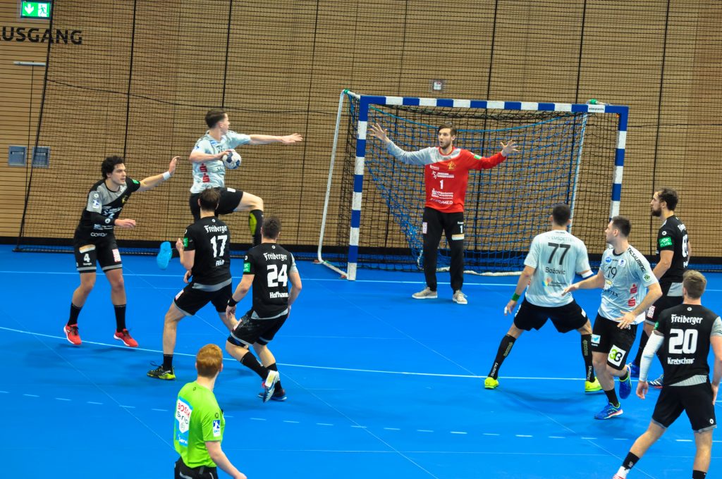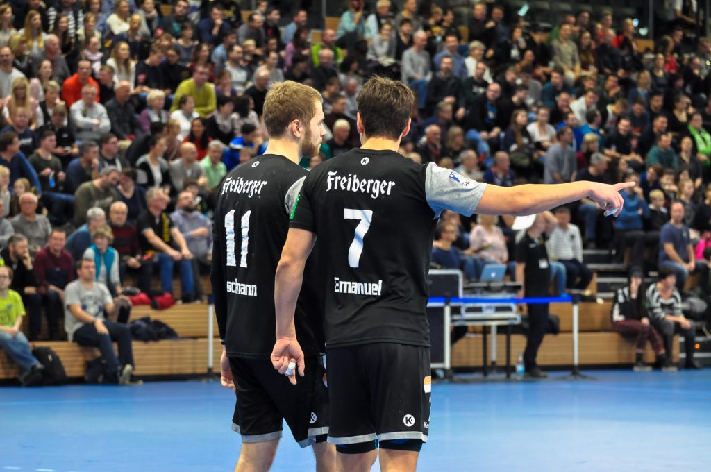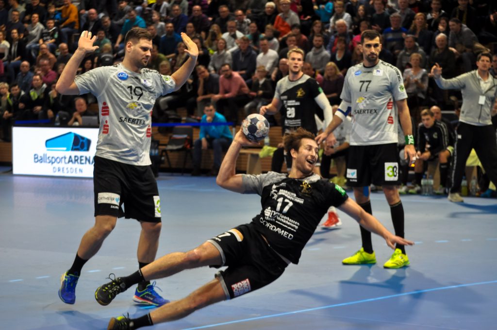 TVE-Trainer Daniel Kubes zur 2. Halbzeit: „Die waren viel viel besser als wir.” Die ersten fast 18 Minuten der 2. Halbzeit brannte der HC mit leichten Anlaufschwierigkeiten ein Feuerwerk ab. Die Mannschaft zeigte sich wie verwandelt. Als Sebastian Greß, nach Ballgewinn HC, erst das leere TVE-Tor zum 26:27 traf und nur kurze Zeit später nach erneutem Ballgewinn per Konter zum 27:27 einwarf, waren rund 2100 Zuschauer der Ekstase nahe. Die Dresdner drückten in dieser Phase unglaublich auf das Tempo und dem TVE gelang immer weniger. Bestes Beispiel war Janko Bozovic, der für Emsdetten in der 1. Halbzeit ein entscheidender Faktor war, im 2. Abschnitt aber kaum in die Partie fand. Vielleicht auch, weil die Dresdner Zuschauer nach einer Aktion des Ballblockierens seinerseits, ihm in seiner restlichen Einsatzzeit ihren Unmut kundtaten. Die Halle war in der 2. Halbzeit insgesamt ein extremer Faktor, denn die Zuschauer gaben alles, um den HC in die Erfolgsspur zu lenken. Allerdings haben die Dresdner ein Problem. HC-Coach Christian Pöhler beschrieb es nach der Partie so: „In der Phase hatten wir ein heißes Herz, aber keinen kühlen Kopf. Wir haben dann im besten Wissen und Gewissen dann zwei, drei Angriffe wo wir es zu sehr erzwingen wollen und lassen klare Chancen dann einfach liegen.” Der HC gestaltet insgesamt in der Saison solchen Phasen zu oft nicht gut. Die Dresdner verpassten es das Momentum des Ausgleichs für sich zu nutzen. Immerhin waren da noch fast 13 Minuten zu spielen. Der TVE fing sich wieder und konnte vor allem durch den wiedergenesenen Spielmacher Merten Krings und den starken Sven Wesseling die Partie wieder zu ihren Gunsten wenden. In der 57. Minute führten die Gäste so mit 4 Toren (30:34). Das Spiel schien gelaufen, doch der HC schaffte es noch einmal sich in die Position für 1 Punkt zu bringen. Erst traf Julius Dierberg per Heber, dann Oskar Emanuel aus der 2. Welle heraus und schließlich nach einer Huhnstock Parade Norman Flödl vom Kreis zum 33:34. Als der TVE sich dann bei angezeigtem Zeitspiel ca. 30 Sekunden vor dem Ende einen Fehlwurf leistete, hatte der HC noch Zeit den Ausgleich zu erzielen. Als Julius Dierberg dann 6 Sekunden vor dem Schlusspfiff von Linksaußen für einen Wurf in den Kreis sprang und danach mit Schmerzen auf der Platte liegen blieb, bewerteten die Einen es so und die Anderen eben anders. Die Vielen haderten mehr und die nicht so vielen weniger. Leider hatten sich in dieser emotionalen Phase nicht alle im Griff. Am Ende gewann der TVE mit 33:34 und jubelte natürlich ausgelassen. HC-Coach Christian Pöhler sagte nach der Partie: „Aus meiner Sicht hatte das Spiel nach der 2. Halbzeit keinen Sieger verdient.“