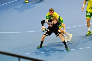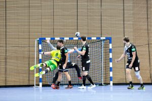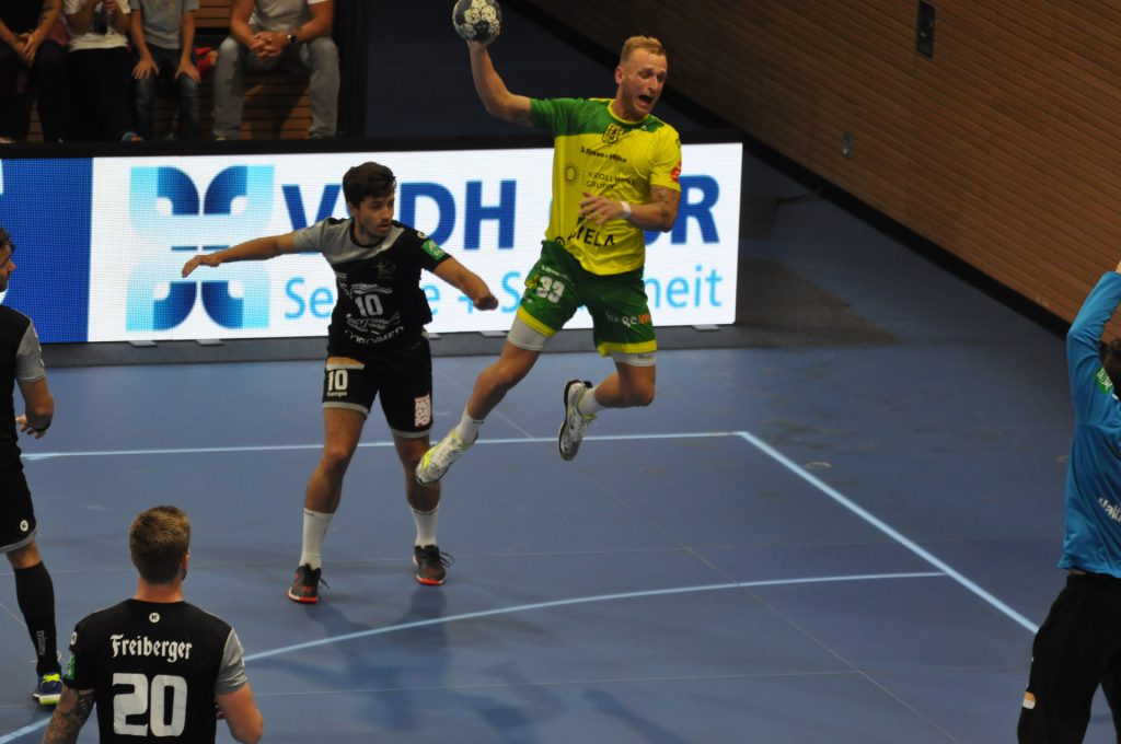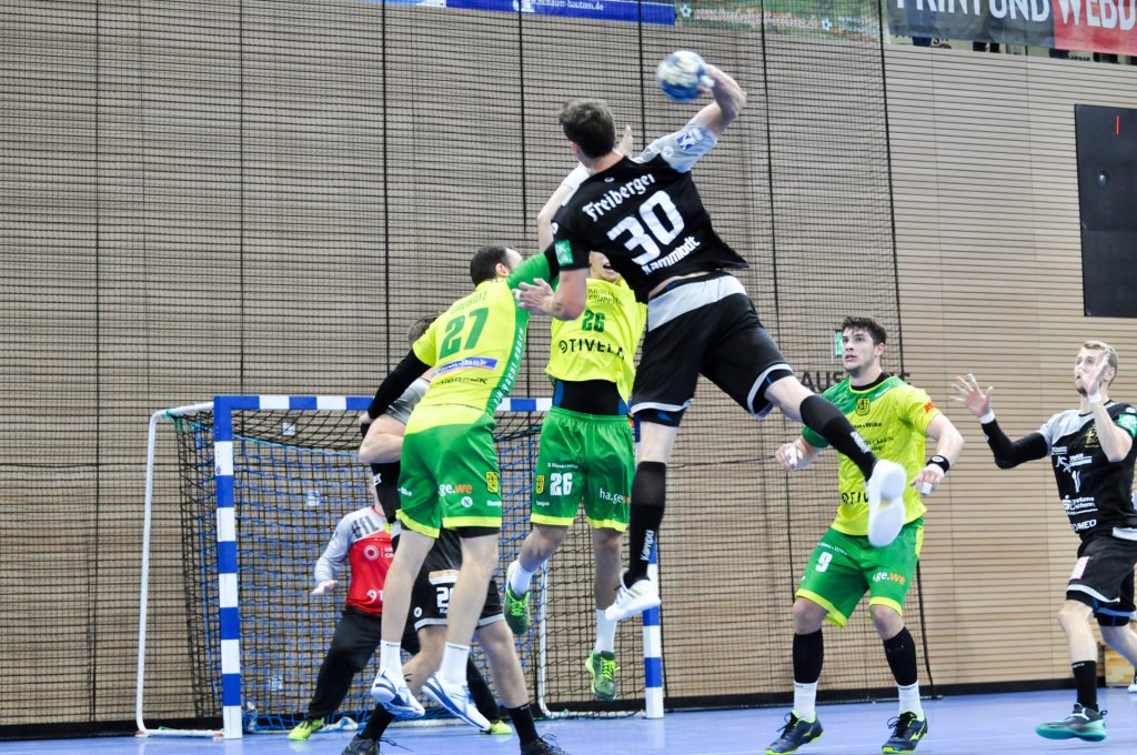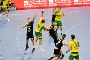 „Wie aus einem Guss“ charakterisierte Christian Pöhler nach dem Spiel die 1. Halbzeit seines Teams. „Wir waren zur Halbzeit mit 4 Toren zurück. Zur Mannschaft in der Kabine habe ich gesagt, gefühlt waren wir schon mit 8 zurück. Wir haben wirklich nicht gut gespielt.“, jenes sagte Gästetrainer Niels Pfannenschmidt zu den ersten 30 Minuten. Der HC startete gut und führte schnell mit 4:1. Mann der ersten Minuten war auf Seiten des HC Anschlusskader Oskar Emanuel. Der auf Rechtsaußen eingesetzte Emanuel sorgte per Konter für das 1:0 und nach einer zwischenzeitlichen Zeitstrafe für ihn dann ein paar Minuten später auch für das 4:1. Auf Seiten des VfL war zunächst Linksaußen Daniel Mestrum der Alleinunterhalter. Er zeigte an diesem Tag eine ganz starke Leistung und war mit 8 Toren der beste Schütze seines Teams. Hagen kam über weite Strecken der 1. Hälfte mit der Dresdner Deckung nicht wirklich zurecht und spielte zudem Überzahlsituationen zum vergessen. Den Sachsen gelang es immer wieder auf 3 Tore davonzuziehen, auch weil der HC seine Überzahl seinerseits sehr konsequent nutzte. Ein in dieser Phase mit guter Spielübersicht ausgestatteter Sebastian Greß erzielte in der 27. Minute trotz starkem Kontakt vom Gegenspieler das 12:8. Nach einem Block in der Abwehr hatte der HC vor der Halbzeit sogar die Chance die 14:10 Führung auf 15:10 zu erhöhen. Dies gelang aber durch einen leichtsinnigen Fehlpass nicht. So gingen die Sachsen mit einer absolut verdienten Führung in die Kabine.