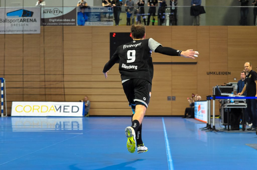 Dass der HC gute und teilweise sogar überragende 2. Halbzeiten spielen kann, wissen die Zuschauer in der BallsportARENA schon. Dass die Dresdner aber auf die schon sensationellen 17 Toren in der 1. Halbzeit noch 17 drauflegten und nur 10 des Gegners zuließen, jenes hatte gegen den Tabellenführer wahrscheinlich keiner vermutet. Auf die Frage wann HSC-Trainer Jan Gorr in der 2. Halbzeit bewusst wurde, dass in Dresden nichts zu holen war, antwortet der HSC-Übungsleiter so, wie es ein Trainer eben tut und führte vielen Faktoren sowie keine Zeitangabe an. Wer ihn beobachtet hatte dem war allerdings klar, der Zeitpunkt muss zwischen der 45. und 50. Minute gelegen haben. Der HC startete gut in die 2. Halbzeit. Eine Mixtur aus 2 Treffern, einer Huhnstock-Parade sowie einer Zeitstrafe gegen Coburg brachte die Sicherheit. In der Folge legte Dresden Tor um Tor zwischen sich und den HSC. Als der an diesem Tag überragende Henning Quade in der 44. Minute zum 25:20 einwarf, nahm HSC-Coach Jan Gorr die Auszeit. Die Coburger Verunsicherung war aber auch nach der Auszeit zum greifen nah und so bauten die Hausherren, angetrieben von den eigenen Fans, den Vorsprung weiter aus. Vor allem die extrem bewegliche Dresdner Abwehr passte dem HSC überhaupt nicht. Als Marc Pechstein für die Dresdner aus der eigenen Hälfte das leere HSC-Tor traf und der Coburger-Keeper Konstantin Poltrum trotz Hechtsprung den Ball nicht mehr erreichte, war das der 32. Treffer des HC. Eine neuerliche Huhnstock-Parade brachte dann durch einen Treffer von Gabor Pulay das 33:23 in der 54. Minute. Die restlichen 6 Minuten nutzten die Gäste um ein kleines Debakel zu verhindern. Am Ende musste der Tabellenführer aber eine 8-Tore-Niederlage hinnehmen (35:27). Das war gleichbedeutend mit der höchsten Saisonniederlage der Oberfranken.  Dass Gabor Pulay das letzte Tor für den HC nach Anspiel vom sehr gut aufspielenden HC-Spielmacher Roman Becvar per Kempatrick erzielte, war noch die „Kirsche auf der Sahne“.
