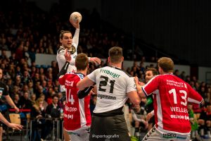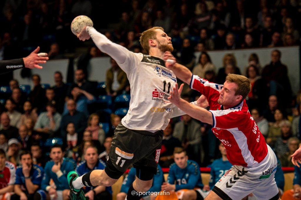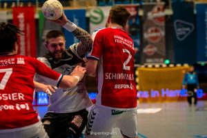 Dass der HC in der Schlussphase noch daran schnupperte das Spiel zu drehen und zudem die 2. Halbzeit am Ende für sich entschied, daran war zunächst nicht zu denken. Die Hamburger trafen und trafen. Vor allem Mannschaftskapitän Lukas Ossenkopp war in den ersten Minuten des 2. Spielabschnittes der wichtigste Mann. So blieb es bis zur 40. Minute bei den 5 Toren Vorsprung (20:15), denn der HC traf munter mit. Ab der 45. Minute drehte sich Partie aber nach und nach. Der Gast agierte in der Abwehr jetzt besser und hatte zudem in Tom Göres einen Rückhalt im Tor, der sich immer mehr steigern konnte. Zwischen der 45. Und 54. Minute konnte er vier Paraden beisteuern. Knapp 7 Minuten vor dem Ende konnte dann Sebastian Greß erstmals auf ein Tor verkürzen (24:23). Die Hamburger trafen dann mit Glück durch Dominik Axmann zum 25:23 und nach dem 25:24 durch den HC noch einmal mit Glück bei Zeitspiel zum 26:24. „Es ist natürlich bitter, wenn am Ende diese Kleinigkeiten das Spiel wohl entscheiden. In der entscheidenden Phase waren es Nuancen.“, sagte Rico Göde nach der Partie. Es waren noch knapp 2 Minuten zu spielen, als Aron Rafn Edvardsson einen Wurf des HC durch Marc Pechstein parierte und den HSV in Ballbesitz brachte. Als Thies Bergemann dann 90 Sekunden vor dem Ende von Rechtsaußen zum 27:24 traf, war das Spiel entschieden. Am Ende trafen beide Teams noch einmal und eine Dresdner Manndeckung in der Schlussminute brachte so nichts mehr ein.