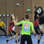 Wer in der 39. Minute an die Anzeigetafel schaute traute seinen Augen nicht. Steffen Köhler hatte für sein Team gerade das 13:13 vom Kreis erzielt. Die Dresdner reihten nach dem Anpfiff fast 10 Minuten lang einen Fehler an den anderen. Die Würfe fanden zudem mit wenig Überzeugung statt. Da kann auch die 10-minütige Pause aufgrund der „blockierten“ Anzeigetafel nicht als Entschuldigung gelten. Man ließ in Angriff und Abwehr alles vermissen, was das Team in der 1. Spielhälfte ausgezeichnet hatte. Nachdem der HC eine Doppelchance ungenutzt ließ – VfL-Keeper Marino Mallwitz kam immer besser in Fahrt – schaffte es das Heimteam dann doch endlich, nach mehr als 10 torlosen Minuten, das 14:13 zu erzielen. Nur wenig später dann auch noch ein Kontertor durch René Boese zum 15:13, basierend auf einer Halfmann Parade. Der junge Keeper zeigte sich erneut stark. Nun entwickelte sich ein 20-minütiger Schlagabtausch, in dem die Gäste in der 47. Minute durch einen Treffer von Pawel Genda erstmals mit 17:18 in Führung gingen. Vor allem das Aufbauspiel des VfL funktionierte jetzt viel besser. Von der erzwungenen Einfallslosigkeit der 1. Halbzeit war nichts mehr zu sehen. Beide Teams agierten jetzt sehr nervenstark. Bis zum 23:23 in der 56. Minute – HC Linksaußen Tim-Philip Jurgeleit hatte für den HC seinen 5. von 5 Strafwürfen verwandelt – blieb der Ablauf immer gleich, die Schwartauer legten vor und der HC nach. Nachdem sich der VfL aber einen Fehler mehr erlaubte als der HC, war es Sebastian Greß der unnachahmlich zum 24:23 für den HC einwarf.