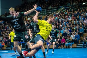 Ein über 45 Minuten ausgeglichenes Spiel verlor der HC dann in der Schlussviertelstunde. In der Phase davor hatten die Sachsen sogar 17:15 geführt und auch die Chance gehabt auf 3 Tore Vorsprung zu erhöhen. Eine Foulsperre des HC ließ aber gar keinen Abschluss zu und so stand es wenig später erst 18:18 und dann 19:19. Bei einer Mannschaft wie der DJK Rimpar, die es mit hoher Konstanz schafft Spiele eng zu gestalten, kann ein Vorsprung bzw. ein Rückstand von 3 bis 4 Toren schon entscheidend sein. Und genau dies bekam das Heimteam dann zu spüren. DJK-Trainer Ceven Klatt nach der Partie: „Ab dem 19:19 hat es meine Mannschaft einfach geschafft noch einmal 5 bis 10 Prozent mehr zu herauszuholen.“ Als DJK-Linksaußen Dominik Schömig per Konter für sein Team 10 Minuten vor Ultimo das 20:23 erzielte, war das in der Nachbetrachtung die Entscheidung. Die Gäste ließen sich den Sieg jetzt nicht mehr nehmen und spielten jetzt fast jeden Angriff lange aus, ohne dabei das Torewerfen zu vergessen. Die Sachsen stellten in der Abwehr noch verschiedentlich um, kamen aber nicht mehr ins Spiel zurück. Ein in der Schlussphase sehr aktiver Michal Kasal brachte den HC zwar nochmal auf 23:24 heran, nach einer Auszeit der Rimparer traf aber zweimal DJK-Rückraumspieler Patrick Schmidt (23:26). Einmal war er vom Strafwurfpunkt eiskalt, das zweite Mal traf er nach einem Dresdner Fehler per Konter. Den letzten Treffer in der Partie setzte dann Michal Kasal zum 25:28 aus Dresdner Sicht.
