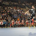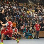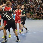 Zu Beginn der 2. Halbzeit brachte dem Gast seine Überzahl erneut keinen Vorteil. So entwickelte sich bis zum 16:16, Tom Skroblien hatte erneut vom Strafwurfpunkt für den TUSEM getroffen, weiterhin ein enges Spiel. Jetzt konnte sich der HC aber erstmals auf drei Tore absetzten. Der für den zunächst verletzt ausfallend Roman Becvar gekommene Arseniy Buschmann zog klug die Fäden und markierte selbst das 17:16. Dann packte der das HC-Spiel wieder sehr belebende Sebastian Greß zweimal den Zauberpass aus und bediente nach Ballgewinn unter Bedrängnis René Boese mit einem Rückhandanspiel. Der traf dann zum 18:16. TUSEM-Trainer Jaron Siewert nahm die Auszeit, konnte aber nicht verhindern, dass Greß danach erneut einen klugen Pass aus Linksaußen Tim-Philip Jurgeleit spielte und dieser zum 19:16 traf. Bis zum 23:20 durch HC-Außen René Boese schwankte der Vorsprung der Dresdner zwar, aber der HC hatte das Momentum ganz klar auf seiner Seite. Die Essener gaben aber nicht klein bei und hatten den Vorsprung in der 54. Minute wieder egalisiert (23:23). Der bärenstarke Rechtsaußen Karl Roosna, Tom Skroblien und Jonas Ellwanger hatten für den TUSEM getroffen. Es blieb eng und einen fantastischen Schlagwurf des Esseners Carsten Ridder bei Zeitspiel, benatwortete HC-Außen Julius Dierberg mit einem feinen „eingerollten“ Wurf von Linksaußen. Und dann kam die entscheidende Szene, denn Tom Skroblien trat zum Strafwurf an und scheiterte an HC-Keeper Hendrik Halfmann. Wer Hendrik Halfmann nach Paraden beobachtet, wusste natürlich was nach dem gehalten Strafwurf folgte und kurz war man sich nicht sicher, fliegt das Dach jetzt gleich wegen „Emotions-Papst“ Halfmann weg – seine ausgestreckten Arme wirken manchmal wie als würde er alle zum Handball bekehren wollen – oder wegen des Publikums. Als die Dresdner dann 30 Sekunden vor dem Ende ein Zeitspiel bis zum letzten Pass ausspielten und Nils Kretschmer vom Kreis zum 27:25 traf, war das Spiel entschieden. Zwar traf Essen durch Roosna noch einmal schnell zum 27:26, die anschließenden Manndeckung der Essener brachte aber nichts ein und so gewann der HC knapp aber verdient.