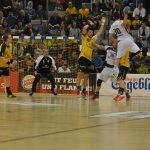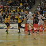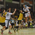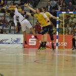 Der HC kam überhaupt nicht gut in die Partie. Es waren noch keine 3 Minuten gespielt, da musste HC Trainer Christian Pöhler eine Auszeit nehmen. HC-Rechtsaußen René Boese sagte nach der Partie: „Die Auszeit haben wir gebraucht!“ Zu diesem Zeitpunkt hatten die Gastgeber schon 3mal getroffen. Lex aus dem Rückraum, Spross per Schnellangriff und Billek vom Siebenmeterpunkt, hatten die Tore für den HSC erzielt. Die Dresdner waren zwischendurch frei vom Kreis an Jan Kulhanek gescheitert. Dies sollten sie in den folgenden Minuten noch öfters tun. Der tschechische Keeper zeigte, in was für einer Topform er sich gerade befindet. 9 Würfe kaufte er in der 1. Halbzeit den Sachsen ab. Auf Seiten der Gäste war es vor allem Linksaußen Julius Dierberg der zunächst die Fahnen hochhielt. In der 14. Minuten mussten sich die Oberfranken beim 7:3 nur den Vorwurf gefallen lassen, nicht schon höher geführt zu haben. Erst nach ca. 20 Minuten waren die Dresdner vollends in der Partie. Auch weil das Torewerfen jetzt auf mehr Schultern verteilt wurde. So traf Sebastian Greß bspw. nach einem Durchbruch zum 12:10. Eine anschließende Parade von Hendrik Halfmann ermöglichte den Dresdnern in der 26. Minute, erstmals in Überzahl, das 12:11 durch Gabor Pulay. HSC-Coach Gorr nahm in der Folge eine Auszeit, musste aber mit seinem Team in der 28 Minute das 12:12 durch Julius Dierberg hinnehmen. Bis zum 14:14 durch HC-Spielmacher Roman Becvar blieb alles pari. In Überzahl traf der HSC dann kurz vor dem Pausentee zum 15:14. Interessantes Detail, dem HSC wurden in der 1. Halbzeit 8 Strafwürfe zugesprochen. Wobei HSC-Torgarant Florian Billek zweimal verwarf und dabei an Hendrik Halfmann scheiterte. Sein Mannschaftskollege Lukas Wucherpfennig machte es dann besser und traf 5 Strafwürfe in Folge. Julius Dierberg sagte zur 1. Halbzeit: „Wir haben im Verlauf der 1. Halbzeit die hitzige Stimmung besser angenommen und uns wieder zurückgekämpft und schaffen es dann mit minus eins in de Kabine zu gehen.“