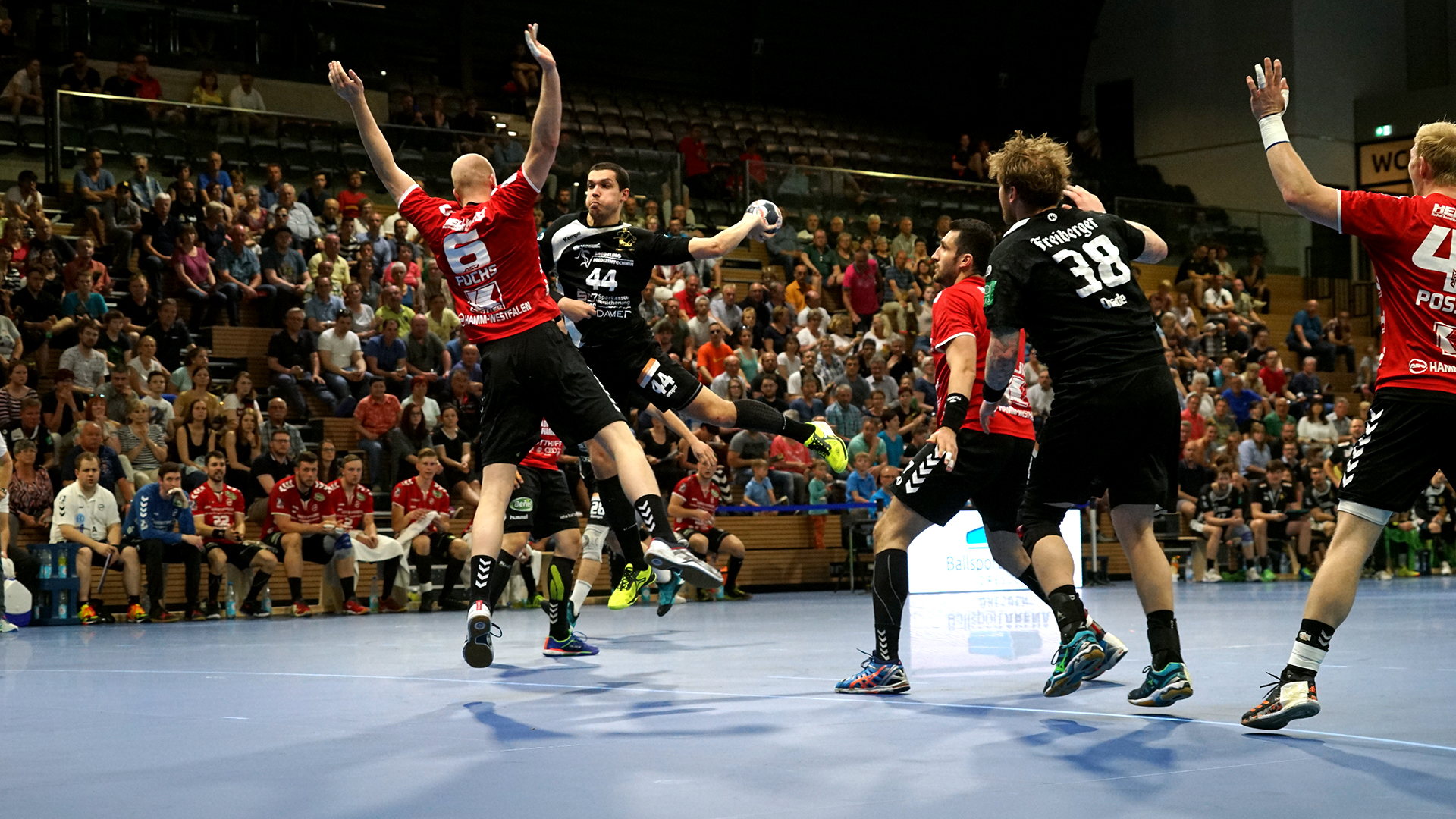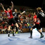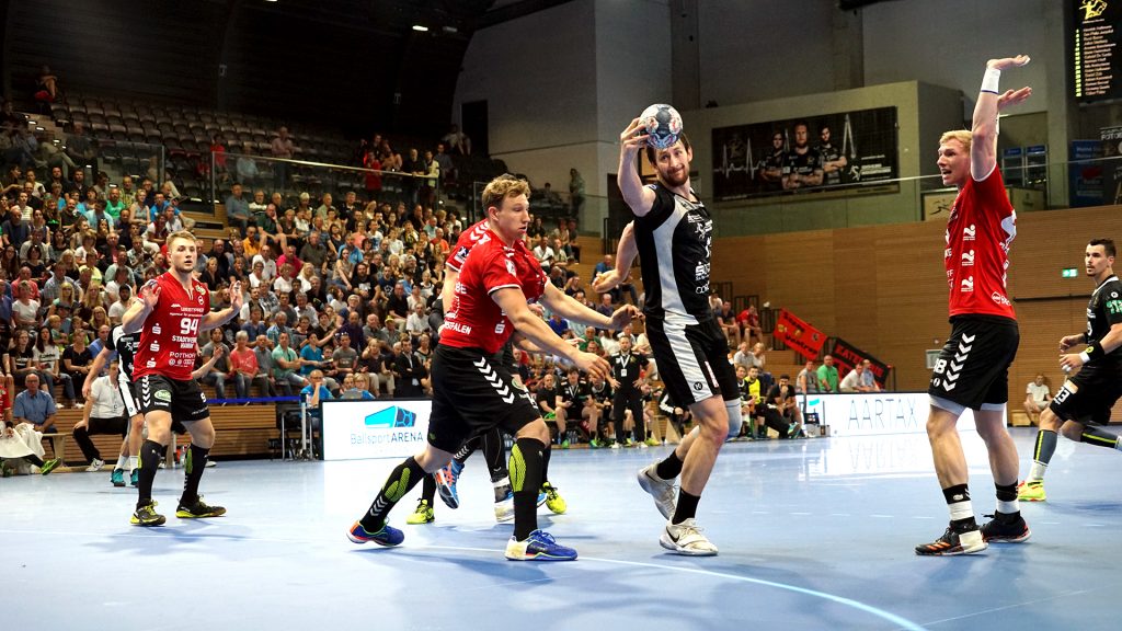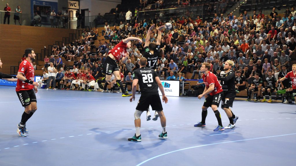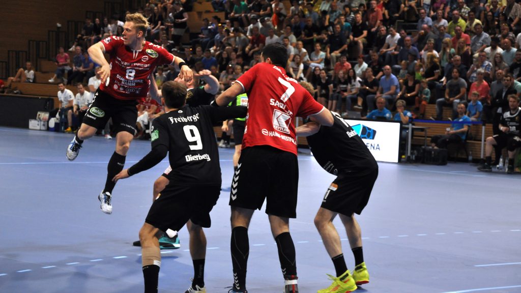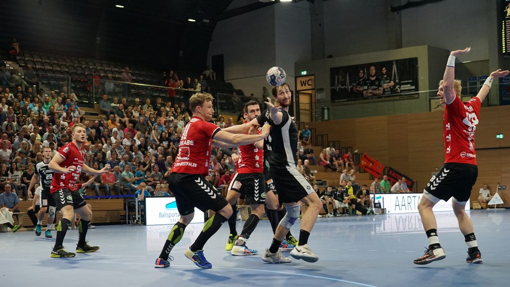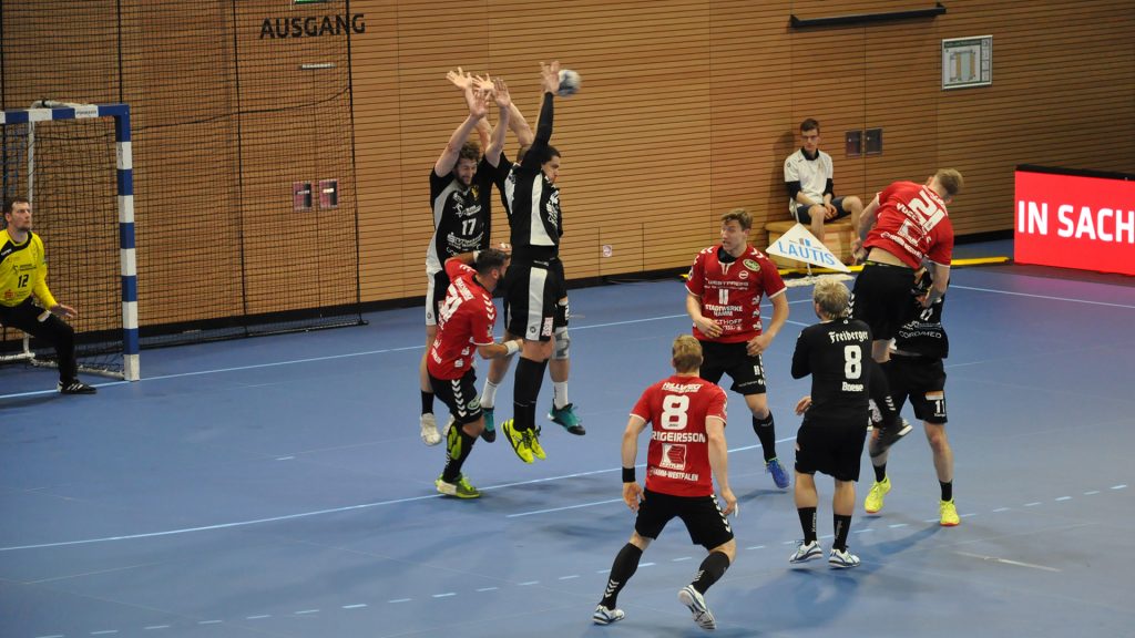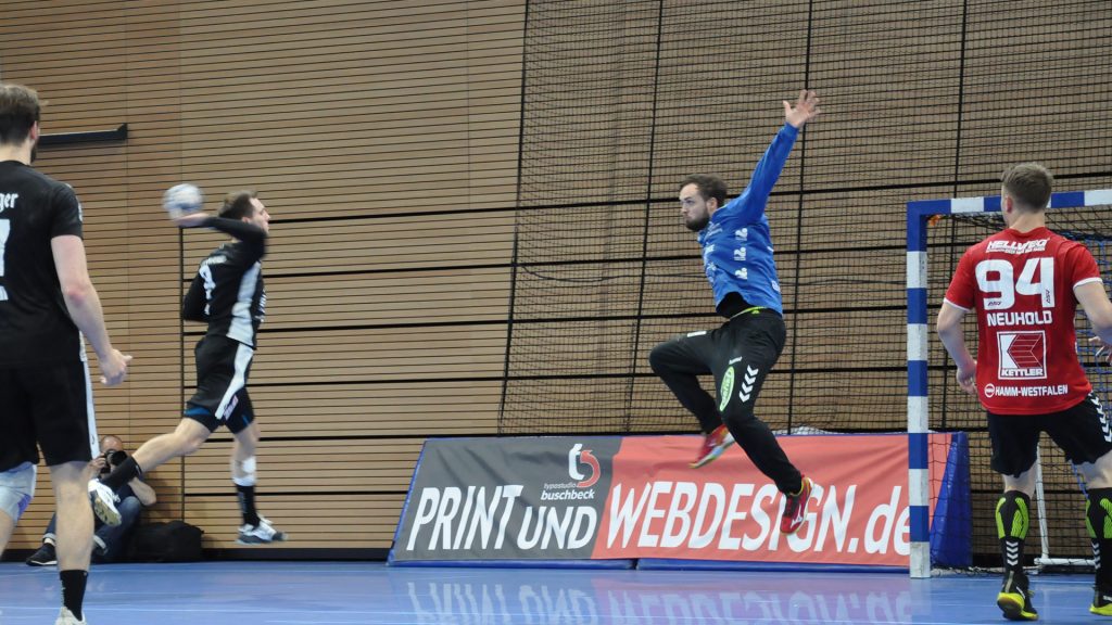 Der HC präsentierte sich über weite Strecken der 1. Halbzeit sehr gut. Die Kombination Abwehr und Torhüter schaffte es die Gäste bis zur Halbzeit bei 9 Toren zu halten. Vor allem Mario Huhnstock im Tor der Sachsen lief zur Höchstform auf. Er parierte im 1. Spielabschnitt 9 Bälle und das teilweise spektakulär. Die Gäste aus Hamm taten sich vor allem die Anfangsviertelstunde sehr schwer. So führte der HC nach 18 Minuten mit 7:3. ASV Coach Kay Rothenpieler hatte schon in der 12. Minute eine Auszeit genommen, um seine Mannschaft positiv zu beeinflussen. Auch wenn sich der ASV ab der 20. Minute steigern konnte, waren die Dresdner doch weiter spielbestimmend. Beide Spielmacher des HC Roman Becvar sowie Arseniy Buschmann hielten die Fäden im HC-Angriff klug in der Hand. Im letzten Drittel der 1. Halbzeit pendelte sich der Vorsprung zwischen 2 und 3 Toren ein, wobei die Westfalen sehr oft vor allem über den Kreis erfolgreich waren. Der sonst so starke ASV-Aufbau blieb zunächst erst einmal weitestgehend wirkungslos. Mit dem 12:9 vom Kreis durch Norman Flödl setzten die Dresdner dann einen spektakulären Schlusspunkt auf starke 30 HC-Minuten. 5 Sekunden waren noch zu spielen als Norman Flödl durch einen „Raketenpass“ jenseits der Mittellinie bedient wurden und sich dann gegen zwei Deckungsspieler durchsetzte, um mit links (seinem Nichtwurfarm) das Tor zu erzielen. ASV Kay Rothenpieler sagte nach der Partie: „Ich habe meinem Team in der Kabine gesagt, dass wir trotz unserer Leistung ja nur 12:9 zurückliegen und das wir jetzt noch eine richtig gute Halbzeit spielen wollen.“ Wermutstropfen war für den HC leider die Verletzung von Nils Kretschmer, der sich bei einer spektakulären Rettungsaktion in der 1. Halbzeit so verletzt hatte, dass er sofort ins Krankenhaus musste.
