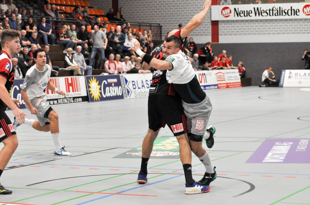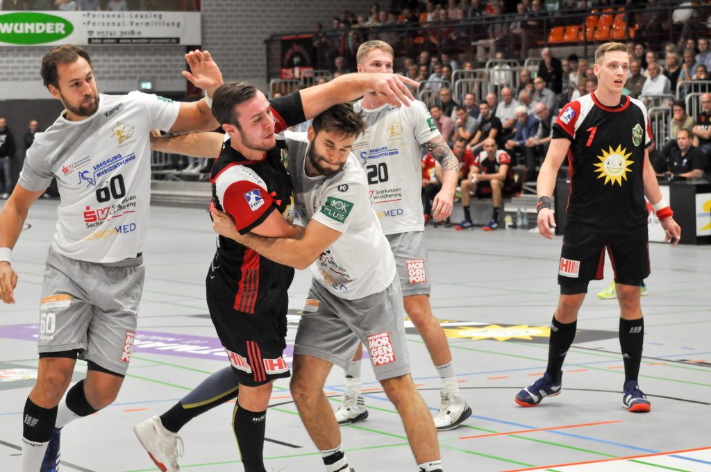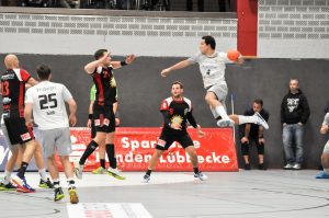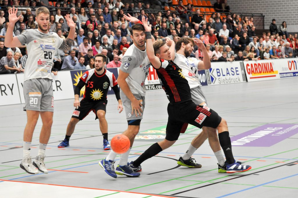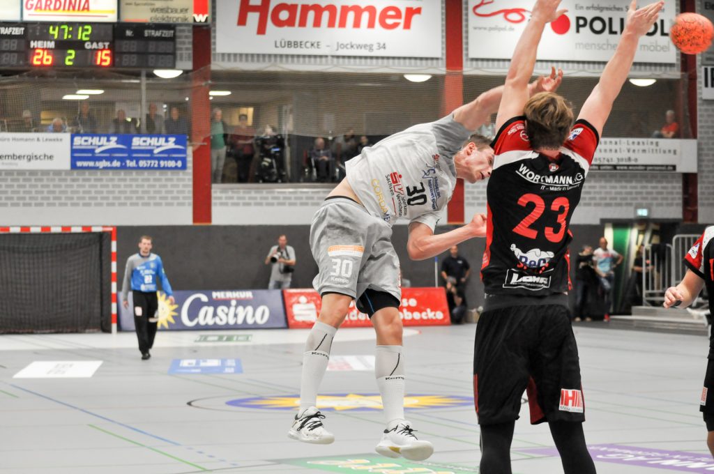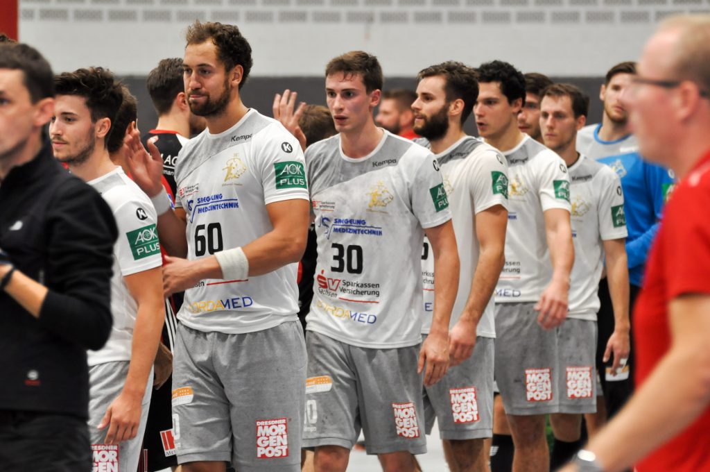 Leider passierte den Sachsen in Lübbecke genau das, was man eigentlich nach dem guten Auftritt in Ferndorf vermeiden wollte. Zur Halbzeit lagen die Gäste schon mit 9 Toren zurück (16:7) und hatten so im Endeffekt die Partie schon verloren. Die Dresdner konnten nur ca. 15 Minuten das Tempo und das Spielniveau des TuS N-Lübbecke einigermaßen mitgehen. HC-Trainer Christian Pöhler zur dann folgenden Abschnitt bis zur Halbzeit: „Wir kommen dann in eine Phase in der wir viel zu leichtsinnig und risikoreich gegen solch einen starken Gegner agieren.“ Nach der Anfangsviertelstunde erzielten die Hausherren vor allem viele schnelle Tore per Konter, aus der 2. Welle oder auch mal aus der schnellen Mitte. Den Klassenunterschied in diesem Spielabschnitt zementierte vor allem Joel Birlehm im TuS-Gehäuse. Der nach dieser Saison in die 1. Liga nach Leipzig wechselnde Keeper, gehört derzeit zum Besten was die 2. Liga zu bieten hat. Schon in der Abstiegssaison des TuS aus der 1. Liga, war er die Entdeckung der Saison. Am Ende der 1. Spielhälfte hatte Birlehm eine unglaubliche Quote von 64 Prozent gehaltener Bälle vorzuweisen (am Ende der Partie waren es 55 Prozent). Darunter auch ein 7 Meter, ein Konter sowie weitere freie Bälle der Dresdner. Über die Spielstände 6:2 sowie 13:6 ging der TuS mit einer klaren 16:7 Führung in die Kabine. Alleine die Tore 13, 14 und 16 waren dabei Tore aus dem schnellen Gegenstoß.