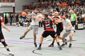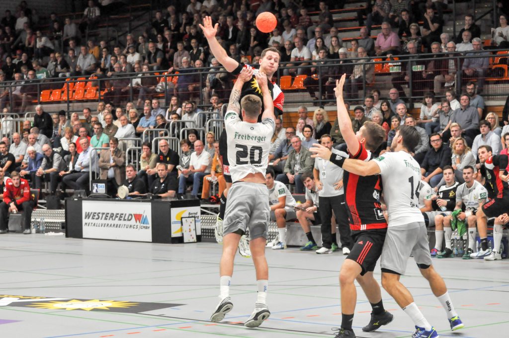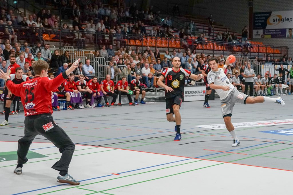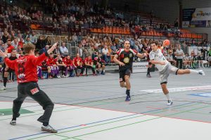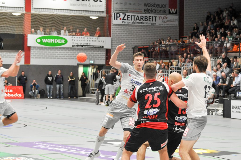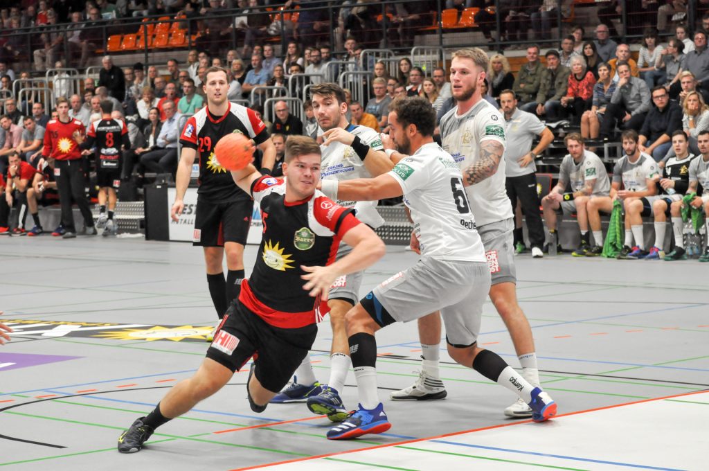 Leider passierte den Sachsen in Lübbecke genau das, was man eigentlich nach dem guten Auftritt in Ferndorf vermeiden wollte. Zur Halbzeit lagen die Gäste schon mit 9 Toren zurück (16:7) und hatten so im Endeffekt die Partie schon verloren. Die Dresdner konnten nur ca. 15 Minuten das Tempo und das Spielniveau des TuS N-Lübbecke einigermaßen mitgehen. HC-Trainer Christian Pöhler zur dann folgenden Abschnitt bis zur Halbzeit: „Wir kommen dann in eine Phase in der wir viel zu leichtsinnig und risikoreich gegen solch einen starken Gegner agieren.“ Nach der Anfangsviertelstunde erzielten die Hausherren vor allem viele schnelle Tore per Konter, aus der 2. Welle oder auch mal aus der schnellen Mitte. Den Klassenunterschied in diesem Spielabschnitt zementierte vor allem Joel Birlehm im TuS-Gehäuse. Der nach dieser Saison in die 1. Liga nach Leipzig wechselnde Keeper, gehört derzeit zum Besten was die 2. Liga zu bieten hat. Schon in der Abstiegssaison des TuS aus der 1. Liga, war er die Entdeckung der Saison. Am Ende der 1. Spielhälfte hatte Birlehm eine unglaubliche Quote von 64 Prozent gehaltener Bälle vorzuweisen (am Ende der Partie waren es 55 Prozent). Darunter auch ein 7 Meter, ein Konter sowie weitere freie Bälle der Dresdner. Über die Spielstände 6:2 sowie 13:6 ging der TuS mit einer klaren 16:7 Führung in die Kabine. Alleine die Tore 13, 14 und 16 waren dabei Tore aus dem schnellen Gegenstoß.
