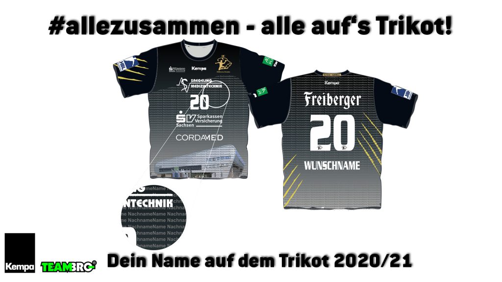 An jeder besonderen Sache gibt es bekanntlich immer einen Haken und wie Ihr gelesen habt, ist das Design des Trikots limitiert und exklusiv. Auf dem Trikot ist nur Platz für maximal 300 Vor- und Nachnamen – es ist also Schnelligkeit gefragt für alle diejenigen, die ihren Namen in der kommenden Saison auf allen Trikots des HC Elbflorenz Dresden lesen wollen!