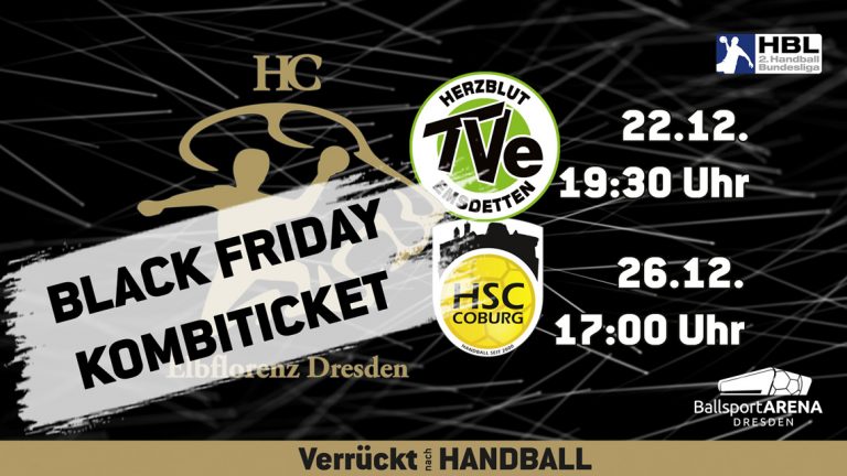 Sichert euch das Kombiticket für die Weihnachtsheimspiele am Black Friday! Am Black Friday 2018 haben auch wir etwas Besonderes für euch: Das Kombiticket für beide Weihnachtsspiele zum Vorzugspreis von 23,- EUR* für Vollzahler und 15,- EUR* ermäßigt (Kinder ab 7 Jahre, Rentner, Studenten/Arbeitslose/Schwerbehinderte mit Nachweis, Mitglieder) Was ihr dafür bekommt? Beide Weihnachtsheimspiele des HC Elbflorenz am 22.12.2018 19:30 Uhr gegen den...