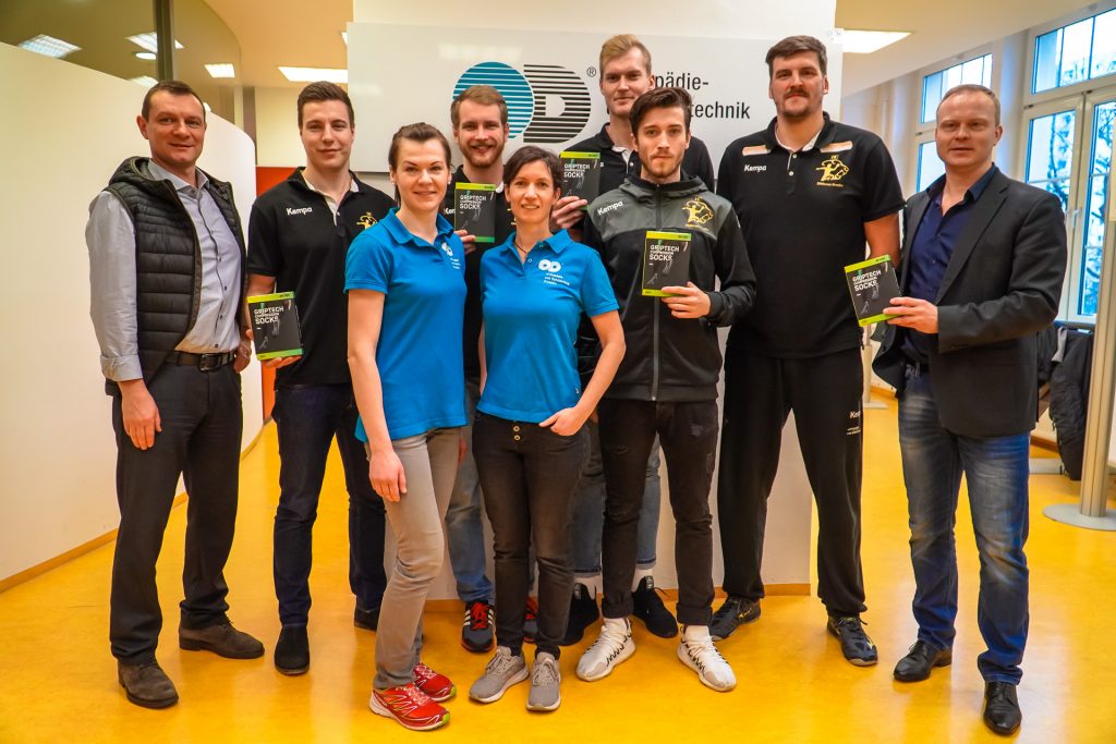 Unser Gesundheitspartner Orthopädie- und Rehatechnik Dresden GmbH unterstützt unsere Sportler bereits seit vielen Jahren mit ihrem erfahrenen Fachpersonal in puncto professioneller Bewegungs- und Haltungsanalysen, Beratung, Therapieempfehlungen und dem dazugehörigen Equipment. Vor ein paar Tagen fand die Übergabe unserer neuen Griptech Compression Socks bei der ORD vor Ort  statt. Diese verbessern die Sauerstoffversorgung der Muskulatur, was zu einer Leistungssteigerung und schnelleren Regeneration der Beine führt. „Vor allem auf den langen Busfahrten, die wir zu und von den Auswärtsspielen unternehmen, sind die neuen Kompressionssocken überaus hilfreich für die Erholung der Spieler.“, freut sich Cheftrainer Rico Göde.