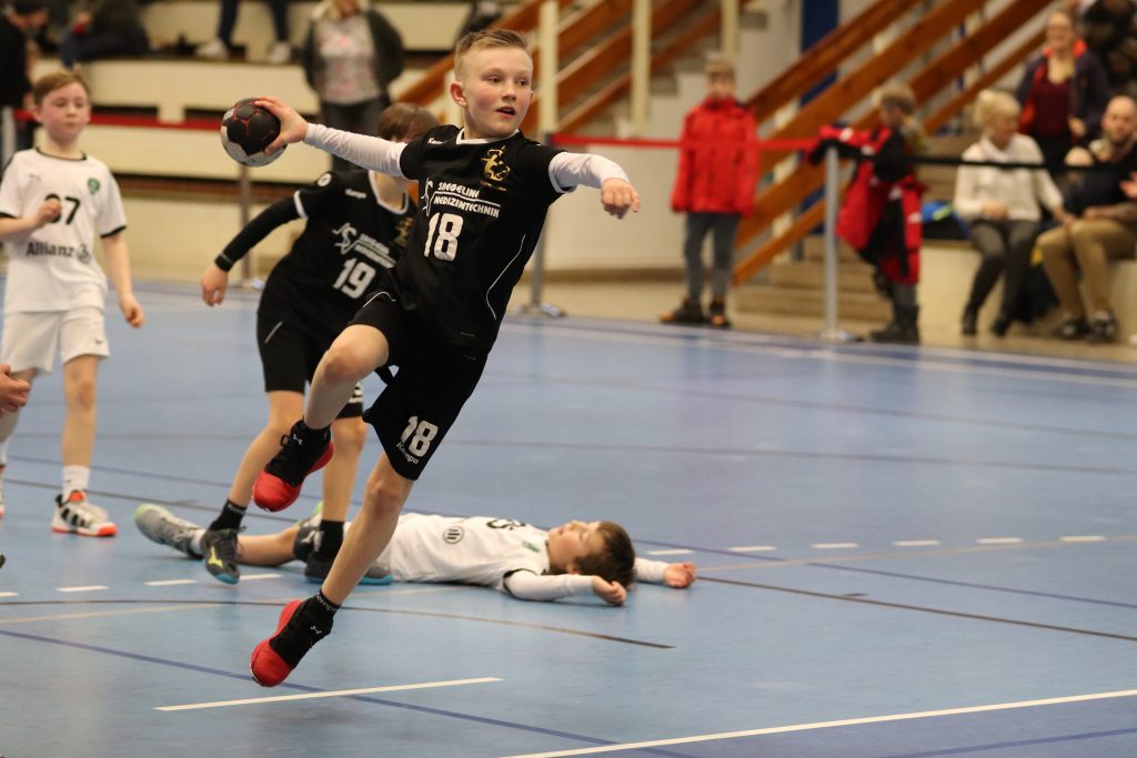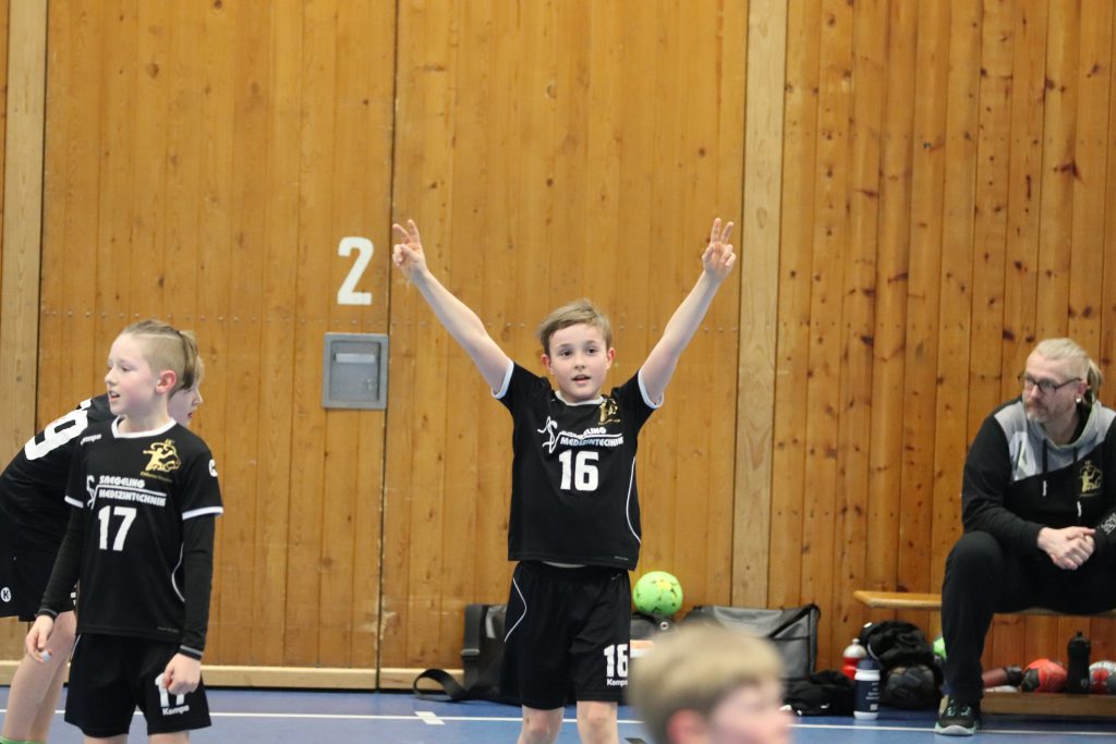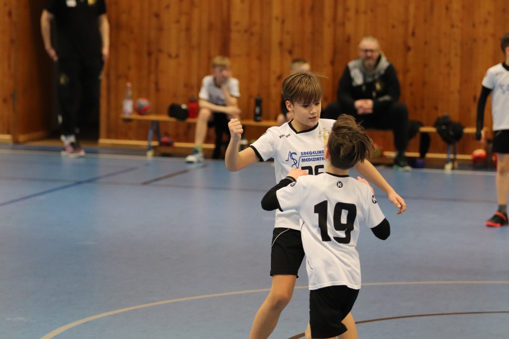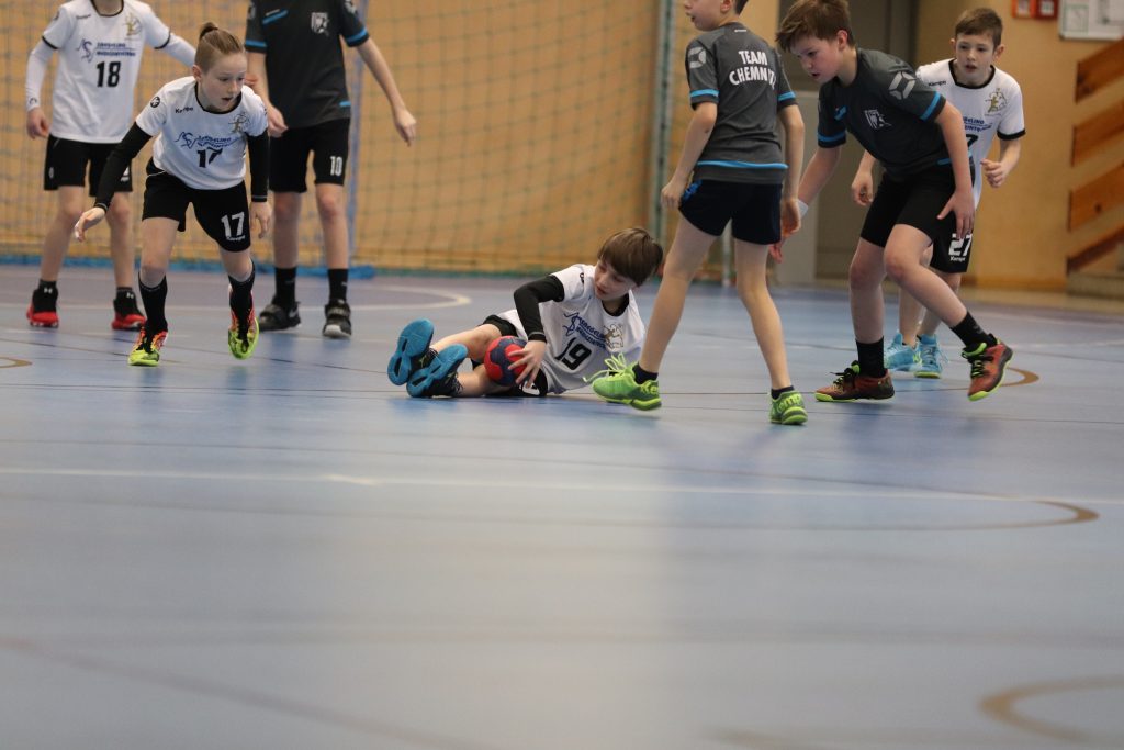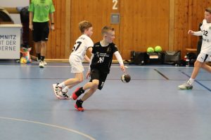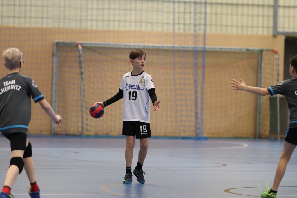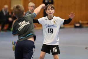 Die ersten beiden Spiele galt es gegen die Gastgeber zu bestreiten. Sowohl gegen Chemnitz 1 (Jahrgang 2009) als auch Chemnitz 2 (Jahrgang 2010), welche beide durch Spieler der Kreisauswahl Chemnitz ergänzt wurden, starteten die Jungs mit einer sehr konzentrierten Abwehrleistung und kamen damit zu einfachen Ballgewinnen. Durch ein geschlossenes Auftreten als Mannschaft über jeweils 2×12 Minuten, konnten beiden Spiele souverän gewonnen werden. Entscheidend sollte nun das 3. Spiel gegen den SC DHfK Leipzig werden. Nach 2 Niederlagen beim Weihnachtsturnier in Wittenberg hatten sich unsere Jungs viel vorgenommen. Und Angst vor den Grün-Weißen brauchen wir ohnehin nicht zu haben. So startete das Spiel mit guten Abwehraktionen auf beiden Seiten, allerdings auch Unsicherheiten beider Teams im Angriff. Im gesamten Spielverlauf konnte sich kein Team mehr als 1 Tor absetzen. Immer wieder legte Leipzig vor, wir glichen aus. Doch ab der 18. Spielminute legten wir vor und gaben die Führung nicht mehr aus der Hand. Durch 2 technische Fehler in der Schlussphase konnte das Spiel am Ende mit +3 gewonnen werden – zum ersten Mal im 5. Vergleich !!