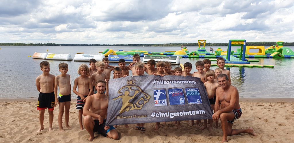 Am 26.08.2020 starteten wir gegen 10 Uhr mit 6 Fahrzeugen auf die einstündige Reise zum Senftenberger See. Da angekommen, wurde die Turnhalle bezogen, direkt im Anschluss stand die erste Trainingseinheit mit den Schwerpunkten „Kennenlernen der Halle“ und Wurftechnik an. In der darauffolgenden Pause eroberten 8 Jungtiger direkt den Strand und zeigten, dass auch 22°C und starker Wind gute Badebedingungen darstellen. Im Anschluss kamen die Jungs und Mädels des HSV Lauchhammer 1958 zu Gast. In der Spielform 2x3vs3 ging es in 4×10 Minuten gegeneinander, ehe die letzten 30 Minuten im 6vs6 mit gemischen Teams gespielt wurde. Nach dem Abendessen im Strandidyll stand noch eine letzte Trainingseinheit am Strand an, bei welcher zuerst wieder das Kennenlernen der neuen Spielfläche im Fokus stand, ehe anschließend in 2 Teams Beachhandball gespielt wurde.