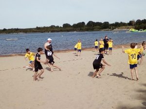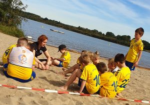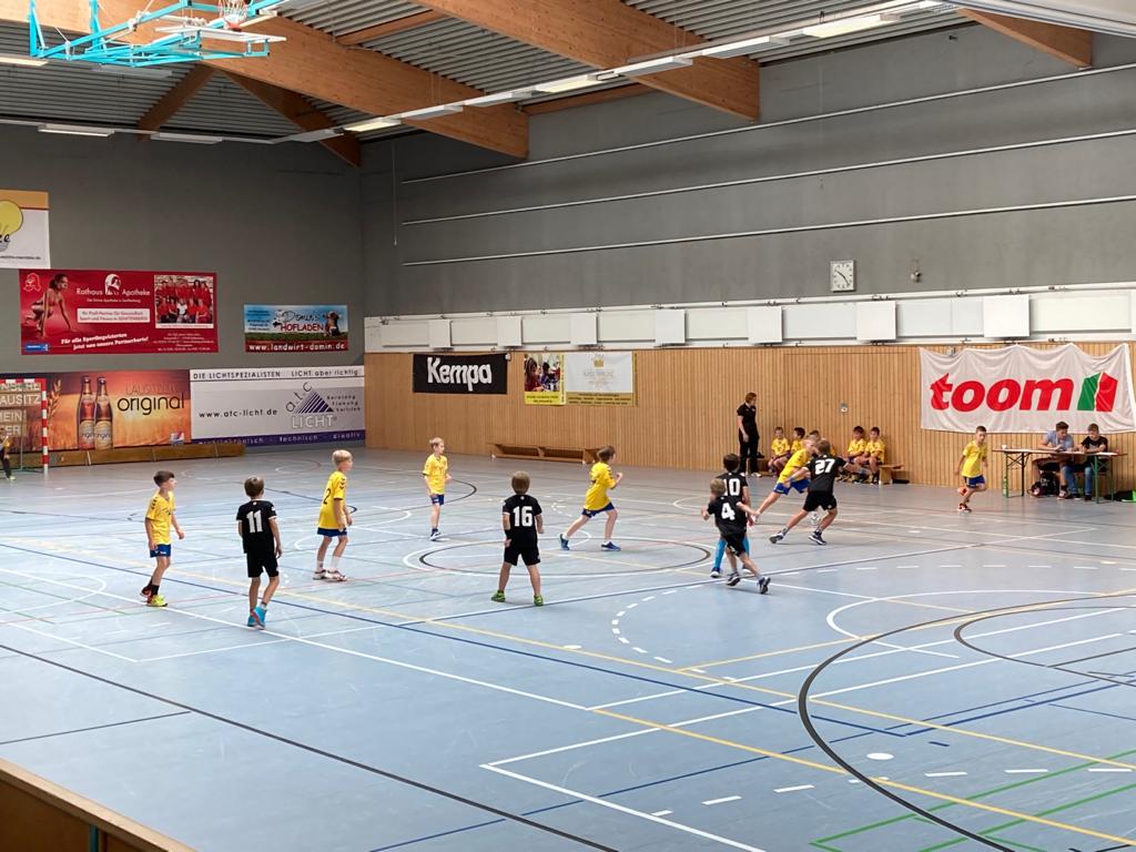 Aufgrund einer stark eingekürzten Saison 2020/21 im Bereich der E-Jugend sehen wir uns als Trainerteam gezwungen, verschiedenste Maßnahmen abseits der offiziellen Spielzeit zu veranstalten. So kamen wir auf die Idee, an der Wirkungsstätte unseres Trainingslager am 19.09.2020 ein Turnier auszurichten. Da es aber auch langweilig wird, immer nur in der Halle zu spielen, haben wir die Umsetzung ein wenig angepasst: im Modus jeder gegen jeden mit 5 Mannschaften wurde gegen jedes Team 1x 20min in der Halle und 2x8min auf dem Beachplatz gespielt.