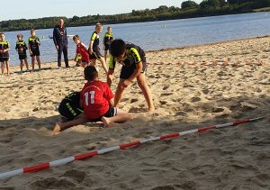 Vor der ersten Spielrunde erstmal Regelkunde: was ist anders auf dem Beach, was darf ich und wie kann ich prellen?! Fragen über Fragen seitens der Kinder aller Vereine. Nach Klärung dieser, ging es 09.30 Uhr mit dem Spiel HC Elbflorenz vs. Radeberger SV in der Halle und HSG RiMeNi vs. SV Brandenburg-West auf dem Beachplatz los. In der zweiten Spielrunde schlossen sich noch die Jungs der AC/Eintracht Berlin dem Spielvergnügen an.