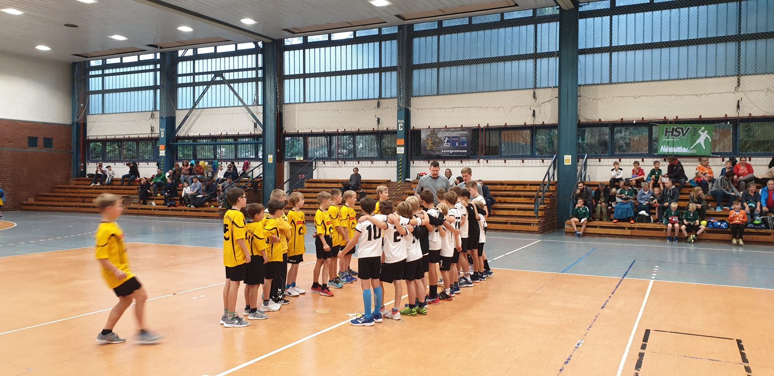 Über den Turnierverlauf zeigten unsere Jungs eine durchwachsene Leistung. Im Auftaktspiel gegen den USV war die Abwehr zu weit weg vom Gegenspieler und folgend zu inkonsequent, was schnelle Ballgewinne angeht. Die beiden nachfolgenden Spiele gegen vermeintlich schwächere Gegner (HSV II, NSG DD NW) sollte dies besser werden, allerdings zeigten auch diese Jungs, dass sie auch Handballspielen können und erarbeiteten sich gegen uns einige Torabschlüsse, welche mit einer stabileren Abwehr verhindert werden müssen! Das letzte Turnierspiel gegen die erster Vertretung des Gastgebers sollte das für den Turniertag entscheidende Spiel werden: beide Mannschaften gingen bislang ungeschlagen in dieses Spiel. Aber auch hier zeigte sich die eigene Inkonsequenz, welche der HSV uns diesmal auch beinahe bestraft hätte. Durch eine deutlich bessere Abwehrarbeit und viel willen zu schnellen Ballgewinnen stand man nun in der Abwehr deutlich besser, mit 8 Fehlwürfen aus den ersten 6 Minuten hätten wir bereits früh das Spiel für uns entscheiden können, so ging es mit einem 5:5 in die letzte Spielminute. Dank eines schnell und direkt ausgeführten Freiwurfs konnten die Jungs das Spiel 10 Sekunden vor Ende mit 6:5 für sich entscheiden! Herzlichen Glückwunsch auch an die starke Leistung des HSV I und aller anderen Turnierteilnehmer!