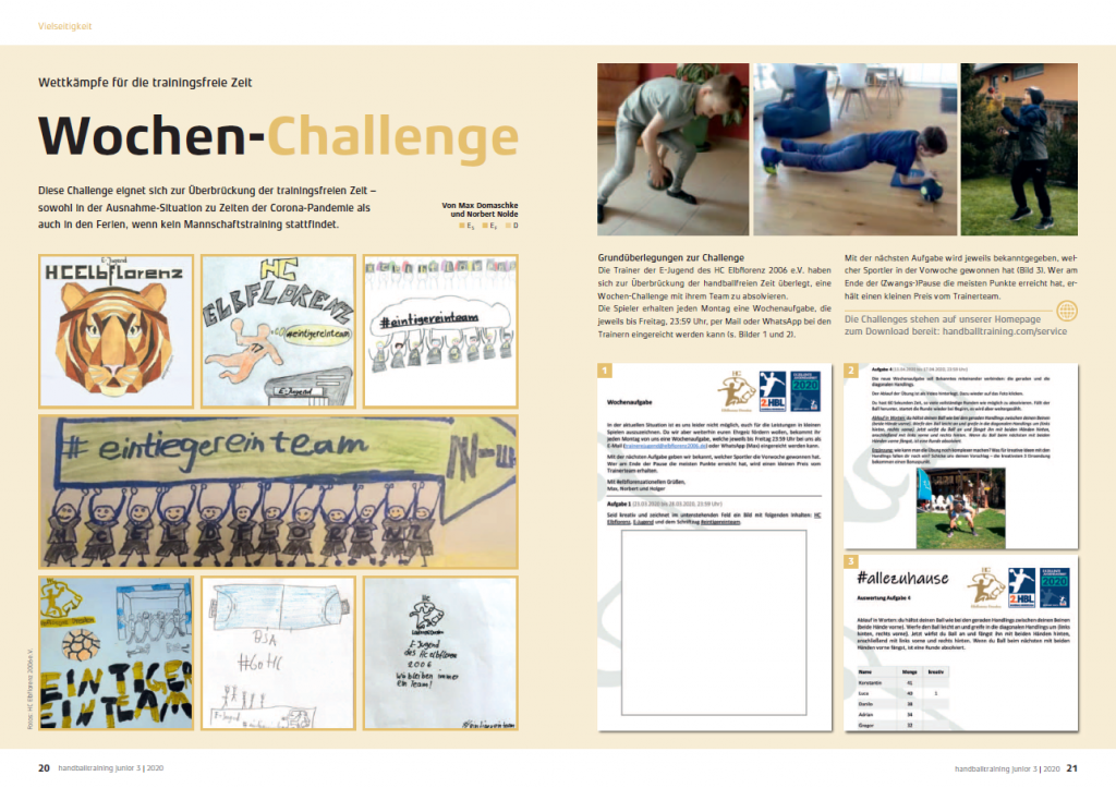 Die Trainer unserer E-Jugend, Max Domaschke und Norbert Nolde, schafften es dabei, mit ihren Aufgaben einen Gastbeitrag in der sehr anerkannten Fachzeitschrift handballtrainingJUNIOR zu erhalten.