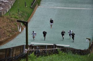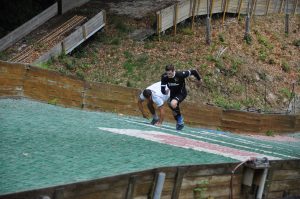 Da das Trainingslager in dieser Saisonvorbereitung relativ früh auf dem Plan stand, lag der Fokus noch etwas mehr auf den läuferischen, athletischen Fokus. Das Lieblingsspielgerät kam dennoch ausreichend zum Einsatz und der Spaß sollte auch nicht zu kurz kommen. So fuhren die Männer um Torhüter Mario Huhnstock am Dienstag mit dem Rad zum Besucherbergwerk „St. Christoph“, um gemeinsam in den Genuss einer Bergwerksführung zu kommen. Einige der „längeren“ Spieler hatten durchaus Schwierigkeiten, sich durch die engen und flachen Stollen zu kommen. Am Mittwoch ging es zur Skisprungschanze Pöhla, wo die Handballer neben Sprints und Sprüngen an den Treppen der Sprunganlage auch einen Wettlauf, die Aufsprungbahn hinauf absolvieren mussten.