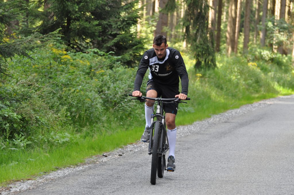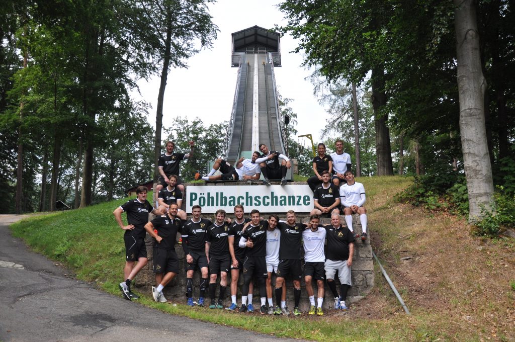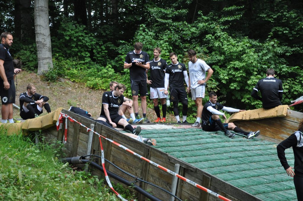 Da das Trainingslager in dieser Saisonvorbereitung relativ früh auf dem Plan stand, lag der Fokus noch etwas mehr auf den läuferischen, athletischen Fokus. Das Lieblingsspielgerät kam dennoch ausreichend zum Einsatz und der Spaß sollte auch nicht zu kurz kommen. So fuhren die Männer um Torhüter Mario Huhnstock am Dienstag mit dem Rad zum Besucherbergwerk „St. Christoph“, um gemeinsam in den Genuss einer Bergwerksführung zu kommen. Einige der „längeren“ Spieler hatten durchaus Schwierigkeiten, sich durch die engen und flachen Stollen zu kommen. Am Mittwoch ging es zur Skisprungschanze Pöhla, wo die Handballer neben Sprints und Sprüngen an den Treppen der Sprunganlage auch einen Wettlauf, die Aufsprungbahn hinauf absolvieren mussten.