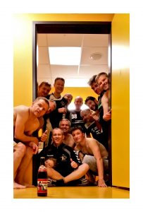 Der heutige Tag, ein Spiel der Generationen, Dipps‘ Altersschnitt sage und schreibe 28 Jahre unter unserem, Dank trotzdem, dass sie mit uns Alten spielten und nicht kopfschüttelnd die Halle wieder verließen. Glücklicherweise spielte eine unserer Jugendmannschaften nebenan, deren guter HipHop-Sound hielt die jungen Dippser wohl bei Laune. Unsere Bank wie immer bisher in dieser Saison gut gefüllt, wir waren ob der Jugendlichkeit + Schnelligkeit der Dippis gewarnt, auch wegen des vergangene Saison verlorenen Spiels, so dass wir bewährt ruhig beginnen wollten.
