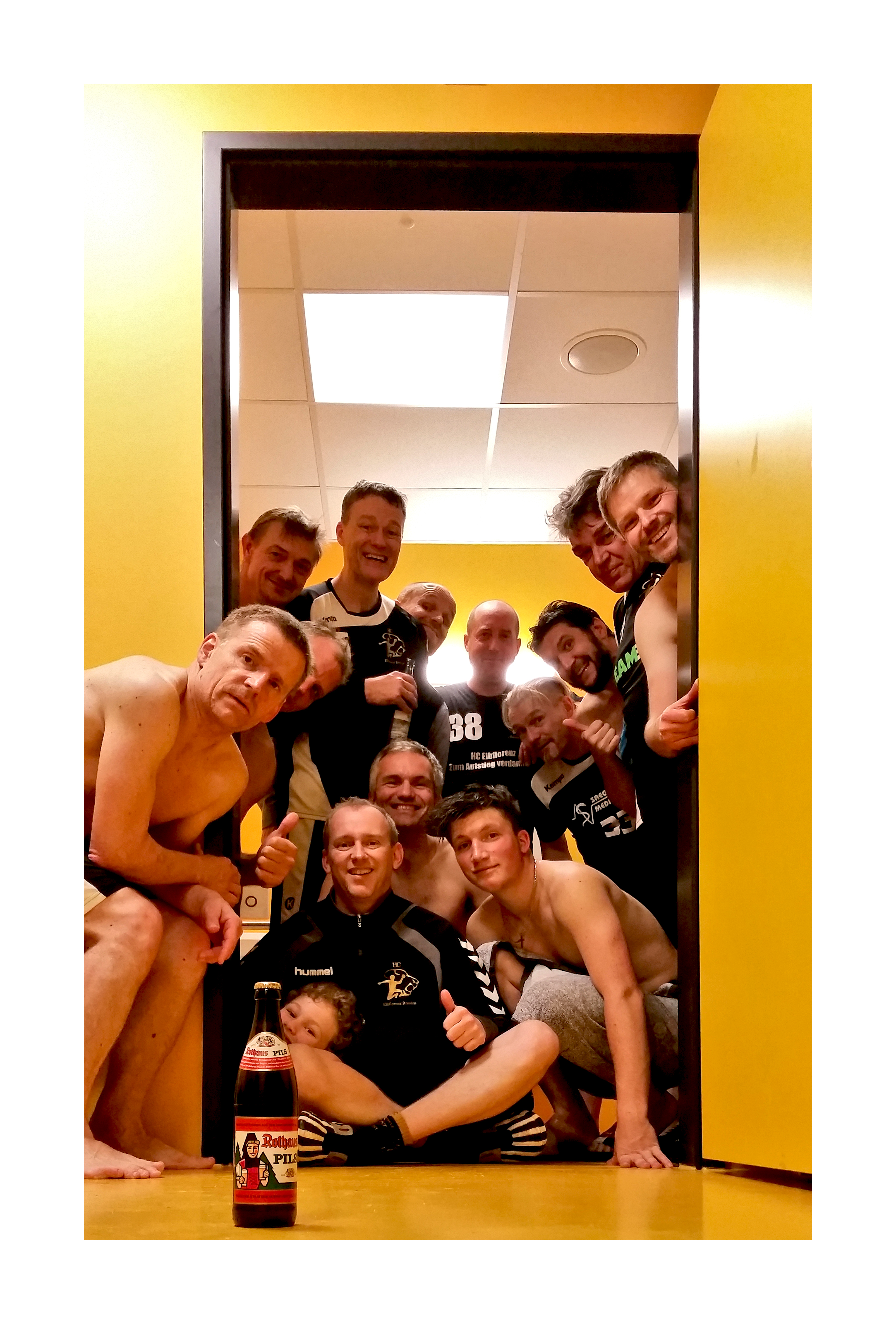 So also und mit der Ahnung einer Kabinenköstlichkeit nach dem Spiel begann Halbzeit 2, wie so oft und trotz Spielertausch standen wir zusammen in der Abwehr, vorne gelangen Tore, wir setzten uns auf 17-14 ab. Diesen Abstand hielten wir bis zum 19-16, nun aber begann die Verarbeitung des zuvor gesehenen, leicht entrückt begannen wir zu stolpern, zu hadern, leise zu schimpfen …. Hinzu kam fehlender Kuchengeruch, vielleicht, so also kam Dipps wieder heran auf 22-22, wir agierten jugendlich ungestüm. Über ein 23-23 beruhigten wir uns wieder, der Trainer löste das in uns gährende Rätsel: