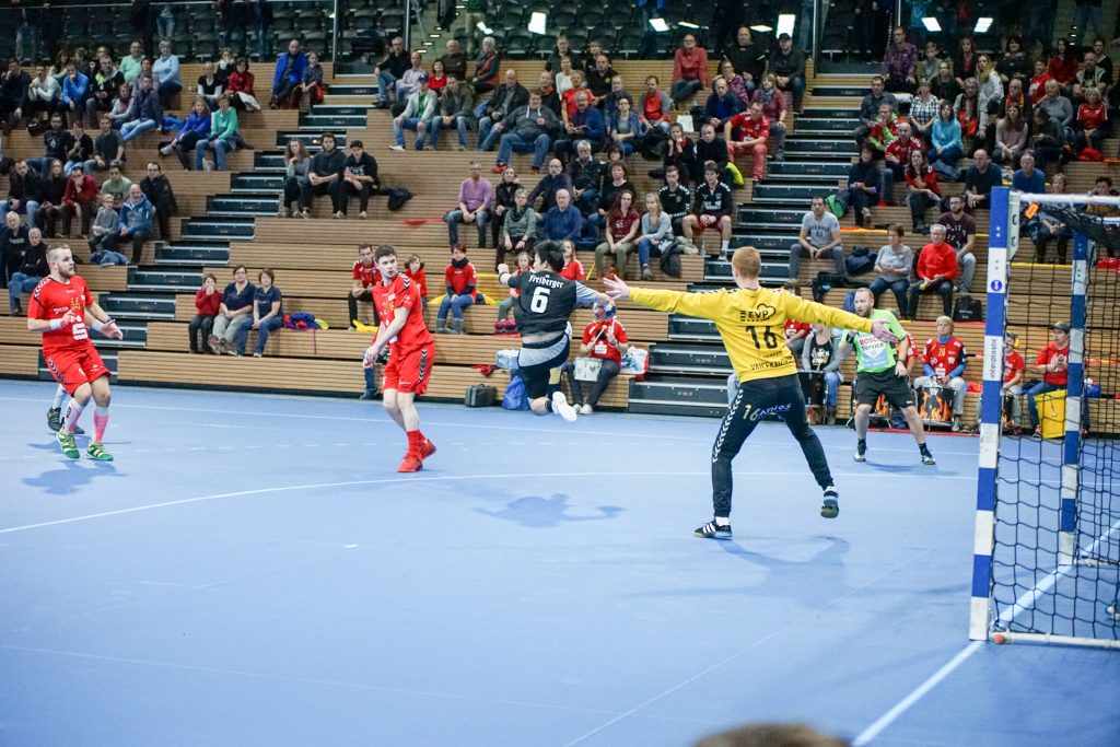 Das Perspektivteam fand schnell ins Spiel, für die meisten Pirnaer wohl zu schnell, und führte rasch mit 8:3 nach 15 Minuten. In den zweiten 15 Minuten der ersten Halbzeit waren es jedoch gerade einfache Fehler der Goedesieben, die die Eisenbahner eiskalt bestraften und damit wieder im Spiel waren. Direkt mit der Halbzeitsirene traf der an diesem Tag 10-fache Torschütze René Boese zur 12:10 Halbzeitführung aus Sicht der Hausherren.