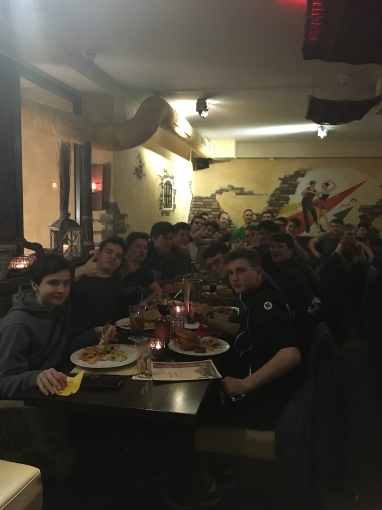 Für den Abend stand dann noch der Besuch der ‚Salsa-Bar‘ bezüglich des Abendbrotes sowie der freiwillige Aufenthalt auf der Players-Party im Programm. Für das Trainerteam ging es nach dem Essen zum Trainer-/Betreuer-Talk, wo man nicht nur mit anderen Trainern ins Gespräch kam – es gab auch eine Talkrunde mit Europameister Niclas Pieczkowski und Mark Dragunski (Trainer mJB HSG Neuss Düsseldorf).