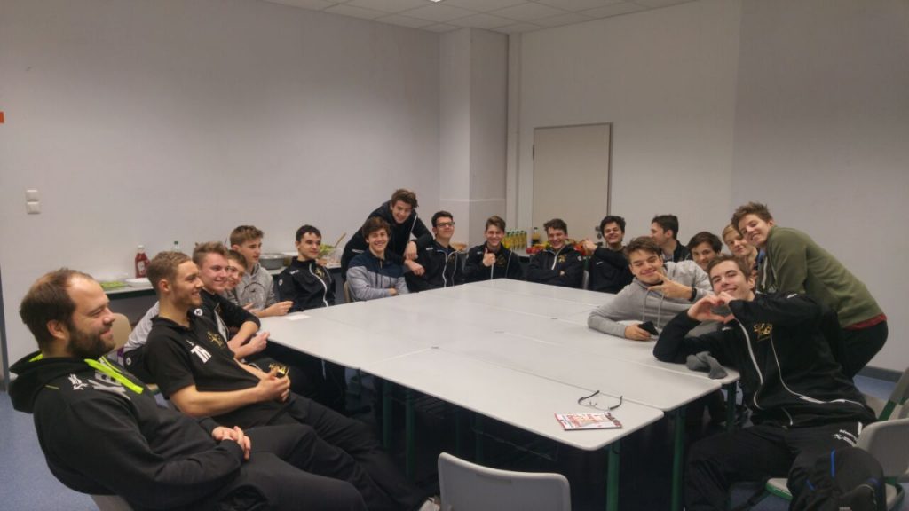 Nach dem Frühstück hatten die Jungs von 8.00 – 11.00 Uhr Zeit sich selbstständig in Gruppen durch Menden zu bewegen, den Großteil zog es aber in die Walramhalle (direkt neben der Unterkunft), wo eine Gruppe der mJA – u.a. mit dem SC DHfK Leipzig – seine Vorrundenspiele austrug.