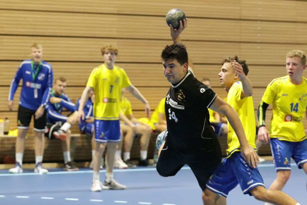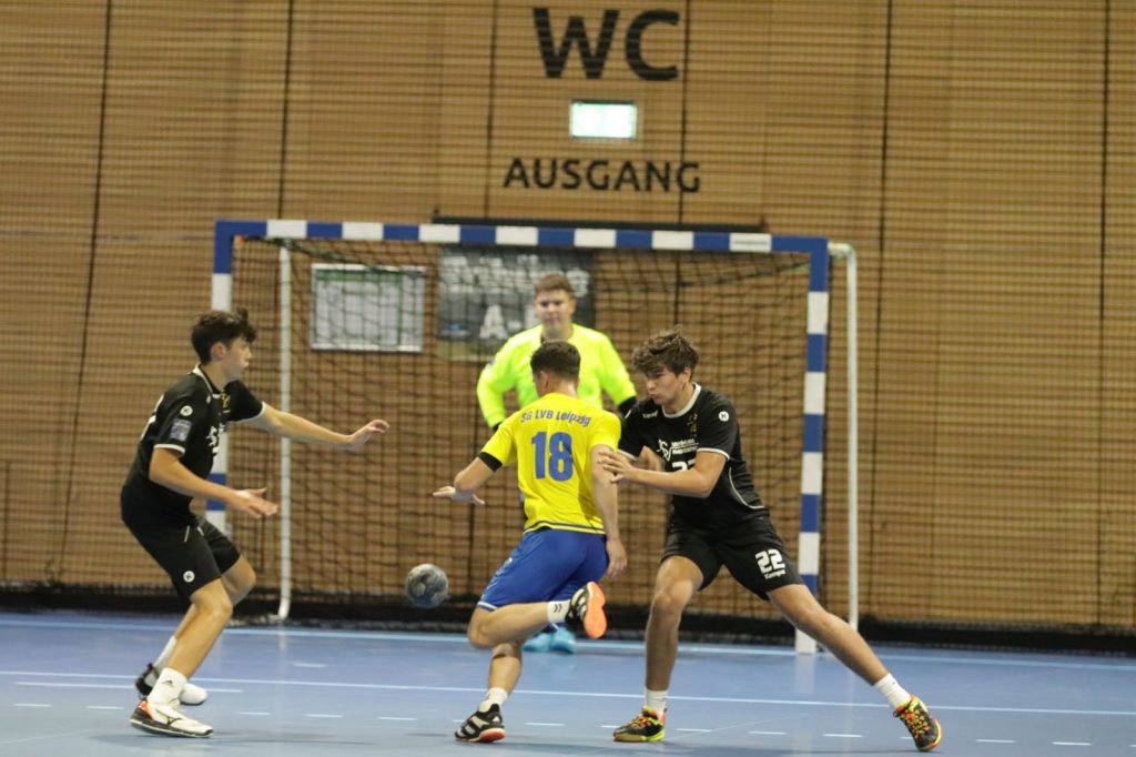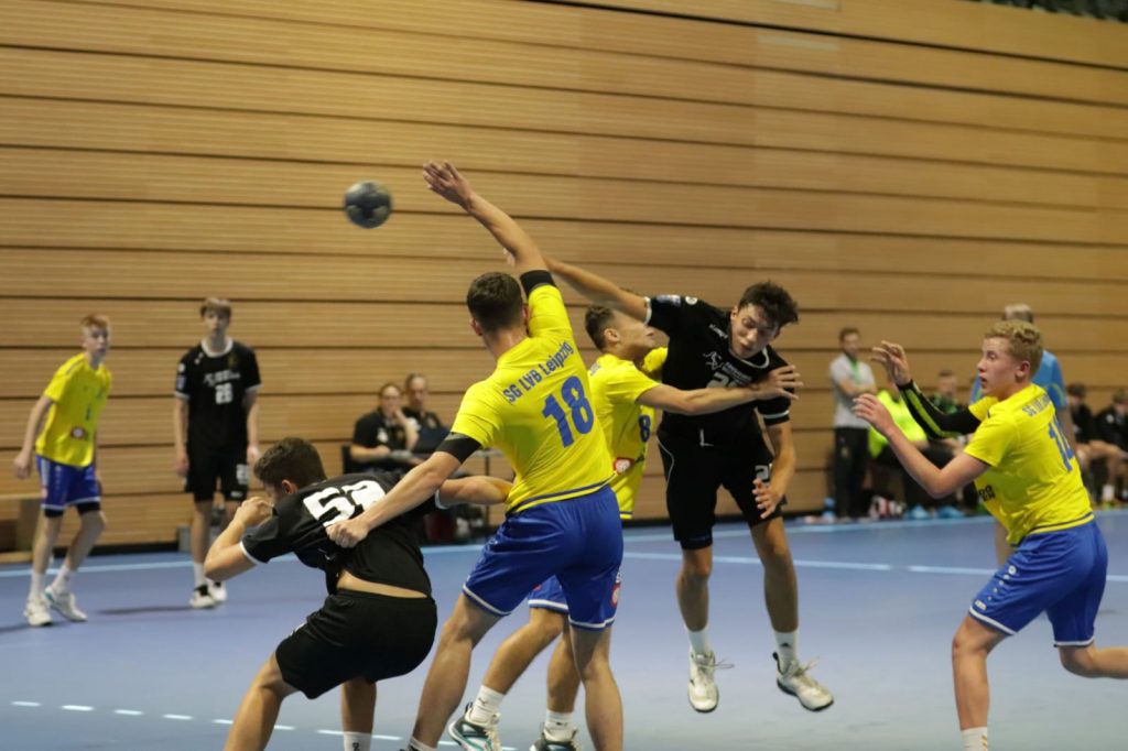 Zu Gast war die SG LVB Leipzig, die als Kooperationspartner von der SC DHFK immer eine wettbewerbsfähige und talentierte Mannschaft aufbieten. Die erste Halbzeit zeigte das eindrucksvoll. Die Anfangsphase war ausgeglichen (6:6) und der Gast spielte strukturiert im Angriff und nutze die Chancen konsequent. Das 7:11 war der verdiente Zwischenstand. Wir schafften es bis dahin nicht unsere individuelle Überlegenheit im Angriff in Tore zu verwandeln. Mit einem Kraftakt in der Abwehr und einem entscheidenden Torhüterwechsel drehten wir das Spiel und konnten mit einer 15:14 Führung in die Halbzeitpause gehen. In der zweiten Halbzeit bot sich ein ähnliches Bild. Allerdings konnten wir uns zwischen der 35-43min mit einem vorentscheidenden Zwischenspurt von 20:19 auf 27:19 absetzen. Unsere stabile, aggressive Abwehr im Zusammenspiel mit dem Torhüter und die individuelle Klasse setzten sich am Ende mit 30:22 durch. Zum Auftakt ein interessantes und packendes Spiel, woran auch der Gast aus Leipzig großen Anteil hatte.