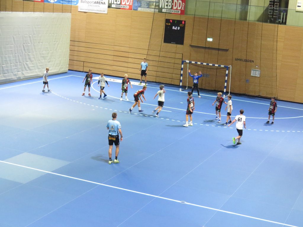 Gegen den HSV Dresden konnten wir uns erst in der Schlussphase auf 16:10 absetzen. Im Spiel gegen Brandenburg West war es lange ein Duell auf Augenhöhe, was wir am Ende mit 12:9 für uns entscheiden konnten. Im intensiven Derby gegen Nickelhütte Aue gewannen wir mit unserer besten Turnierleistung mit 17:12. Unsere Grenzen zeigte das Spiel gegen den SC Magdeburg auf. Nur bis zum 9:11 konnten wir mithalten. Danach dominierte die körperliche Überlegenheit der Magdeburger und sie siegten souverän mit 20:11. Am Ende konnten wir mit 3x Siegen und 1x Niederlage zusammen mit dem SC Magdeburg und Nickelhütte Aue ein positives Fazit ziehen. Fortschritte in der ballorientierten Abwehrarbeit, phasenweise gute individuelle Angriffsleistungen standen eine durchwachsene Chancenverwertung und noch fehlende Konsequenz im Zweikampf gegenüber. Daran gilt es weiter zu arbeiten – die nächste Gelegenheit bietet sich bereits am 12.09. beim Heimturnier und am 13.09. beim Nickelhütten Cup in Aue. Mein besondere Dank gilt der BallsportARENA (inklusive Catering) , dem Kampfgericht des HC Elbflorenz und den Schiedsrichtern Tille, Girschick (beide HSV Dresden), Lippoldes (SSV Chemnitz-Rottluff) und Punte (SV Medizin Bad Gottleuba) für den organisatorischen Rahmen. Für die Teilnahme und die spannende Spiele möchte ich auch den Trainern/Sportlern vom SC Magdeburg (Nils/Wolfram), Brandenburg West (Dennis), Nickelhütte Aue (Martin) und dem HSV Dresden (Jens) danken.