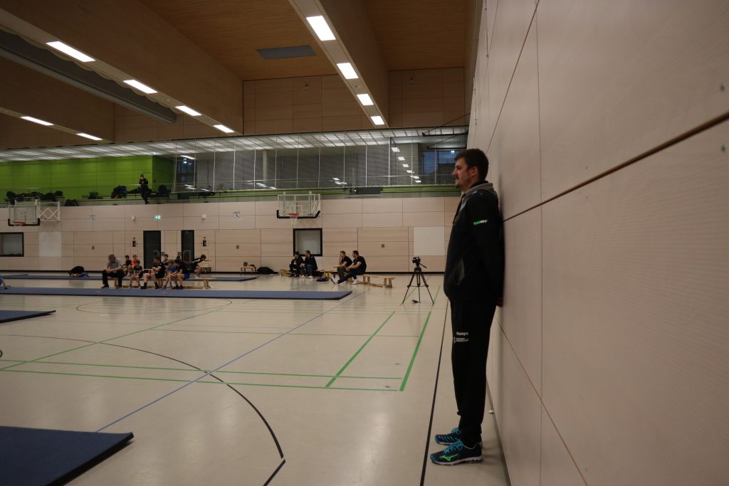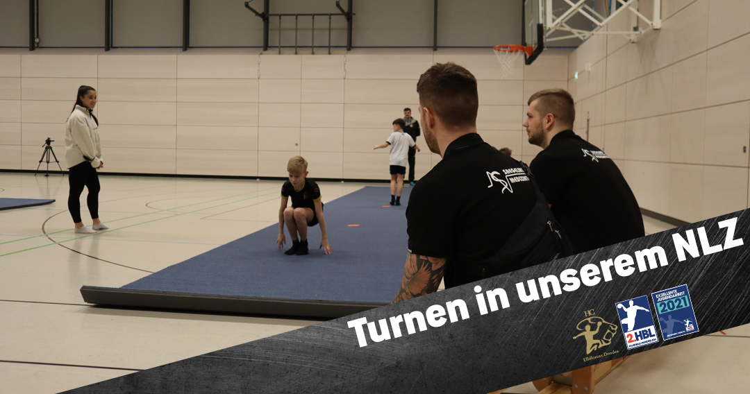 Gemeinsam mit 6 Spielern stattete das Trainerteam der Bundesliga dem Training unserer NLZ D-Jugend einen Besuch aus einem besonderen Grund ab: Im Rahmen ihres Turntrainings stand gestern die Vorführung der Kür im Programm. Mit großer Begeisterung sahen die HC-Profis, was die Jungtiger in den letzten Monaten gelernt haben. Chefcoach Rico Göde staunte über die extremen Fortschritte aller Jungs, nachdem er sich zuletzt vor dem Jahreswechsel unauffällig ein paar Einheiten angeschaut hat.