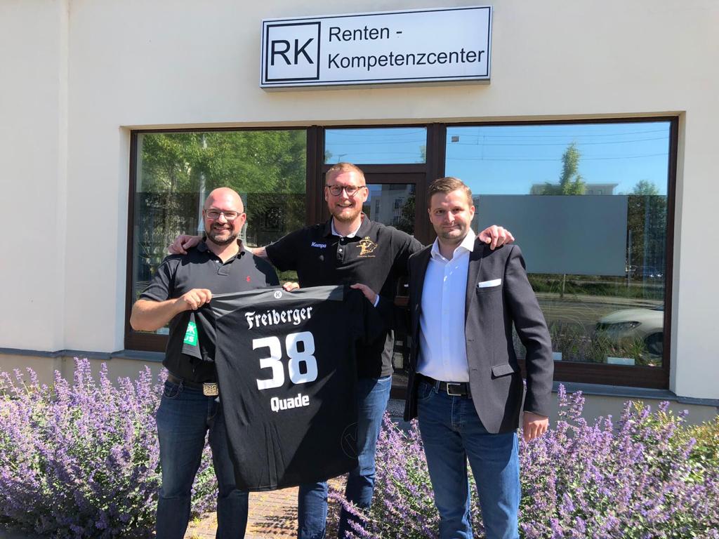 „3,2,1…meins“ – oder „Nicht lang zögern – einfach machen!“ So oder so ähnlich müssen die Gedankengänge bei Marcus Kreusch und Frank Plischke gelaufen sein als unsere Versteigerungsaktion Anfang Mai begann. Für 500,- EUR Sofort-Kauf sicherten sich unsere Partner vom Renten-Kompetenzcenter das Originaltrikot der abgebrochenen Saison und halfen damit unserem Verein und dem Nachwuchsleistungszentrum des HC Elbflorenz Dresden. In der letzten Woche fand nun endlich die persönliche Übergabe durch Kreisläufer Henning Quade statt. Danke!