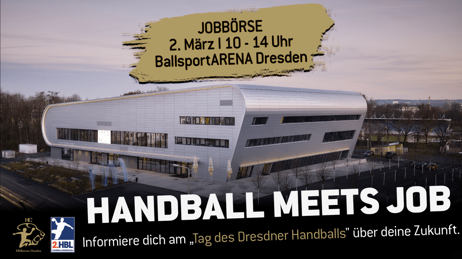 Handball meets Job – unter diesem Motto wird der HC Elbflorenz Dresden am 02. März 2024 von 10-14 Uhr den „Tag des Dresdner Handballs“ veranstalten. Damit schaffen die Dresdner Handballer eine Plattform, bei der Handballsport und Jobmesse miteinander kombiniert werden. Den Rahmen bieten die Heimspiele der HCE-Jugendmannschaften von der C-Jugend bis zum Perspektivteam (U23-Mannschaft). Ergänzt wird das Event mit regionalen Unternehmen und Ausbildungsbetrieben, die jungen Menschen eine berufliche Perspektive präsentieren werden.