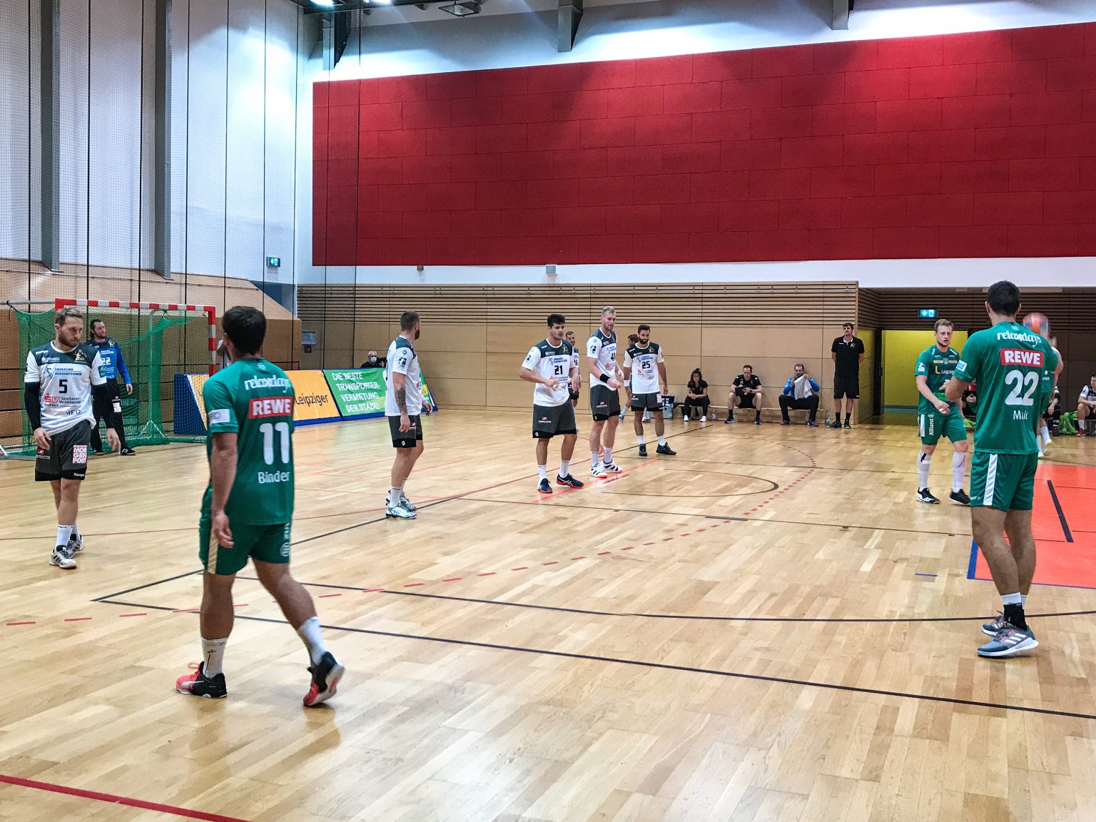 Rico Göde zum Spiel: „Erstmal war die Freude groß, dass wir überhaupt wieder spielen konnten. Zweitens habe ich mich gefreut, dass wir verletzungsfrei durch das Spiel gekommen sind. Das Niveau war insgesamt nicht schlecht. 32 Gegentore sind jetzt kein Superwert, aber man hat natürlich auch gesehen, dass die Leipziger ein Erstligist sind. Mit den Hauptschwerpunkten für das Spiel, nämlich das eigene Tempospiel und die Verhinderung des gegnerischen Tempospiels war ich ganz zufrieden. Hier und da hätten wir uns auch noch etwas cleverer anstellen können, aber insgesamt war es in guter erster Test.“
