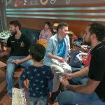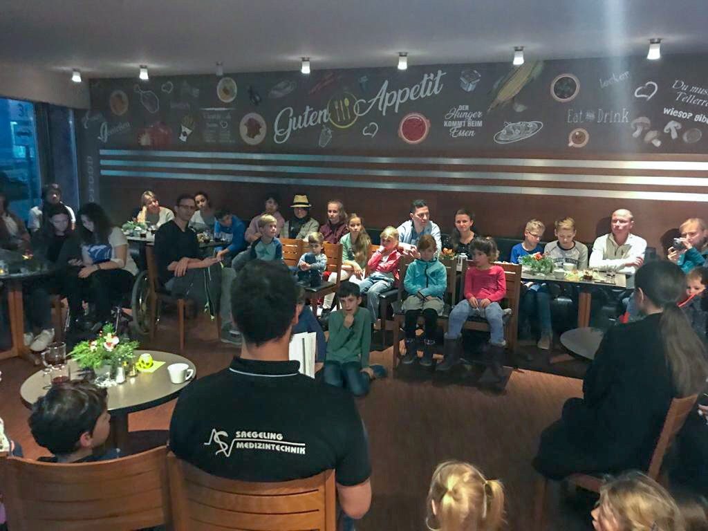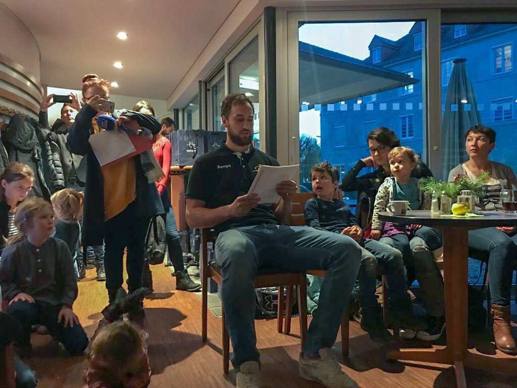 Zusammen mit den Dresden Monarchs, Dresdner Eislöwen Eishockeyclub und den Dresden Titans Basketball Club waren Norman Flödl und Marc Pechstein heute zu Besuch im Krankenhaus Dresden-Neustadt. Nach der traditionellen Vorlesestunde bekamen die kleinen Patienten von allen Vereinen gemeinsam befüllte Geschenktüten.